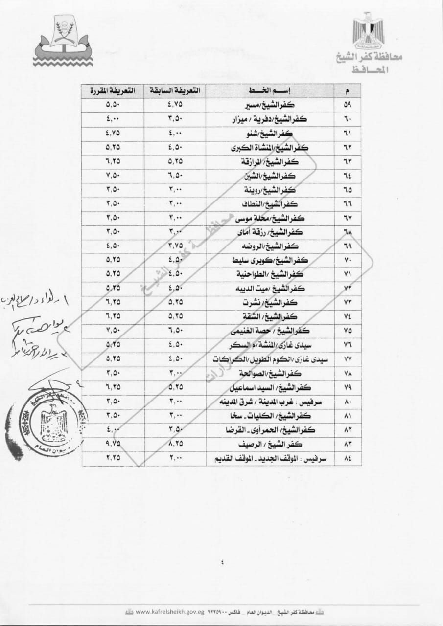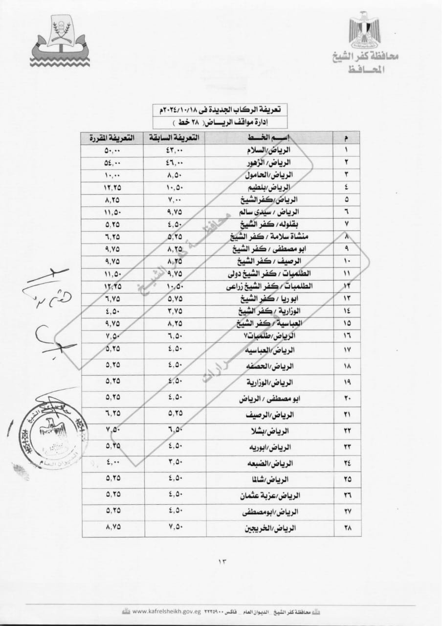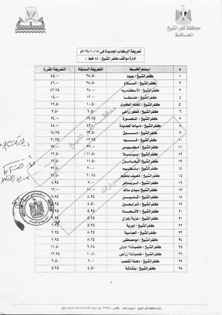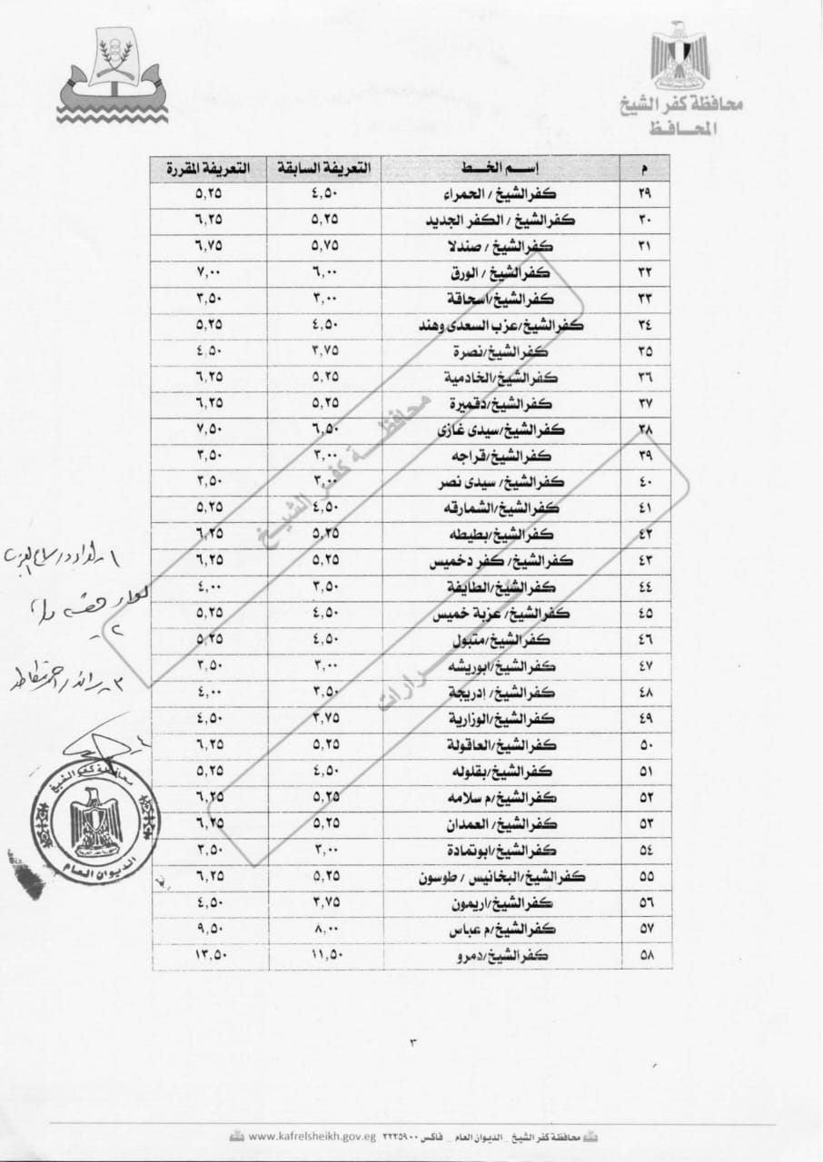 محافظ كفر الشيخ يعتمد التعريفة الجديدة للمواصلات