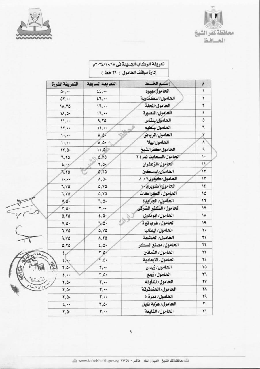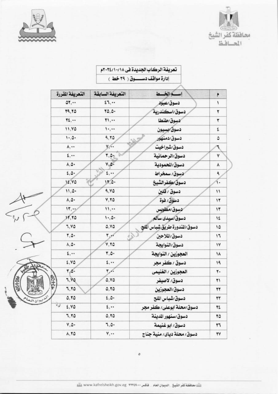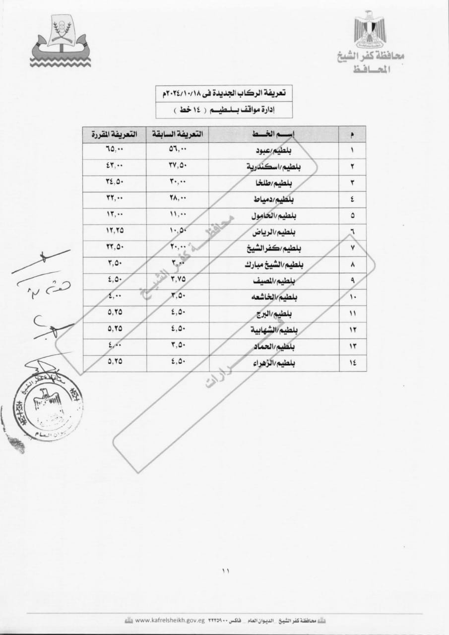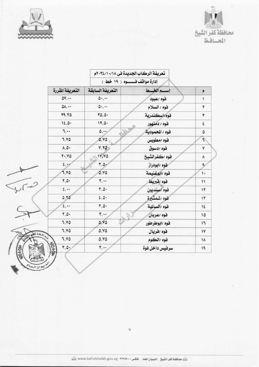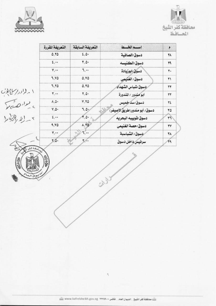 محافظ كفر الشيخ يعتمد التعريفة الجديدة للمواصلات