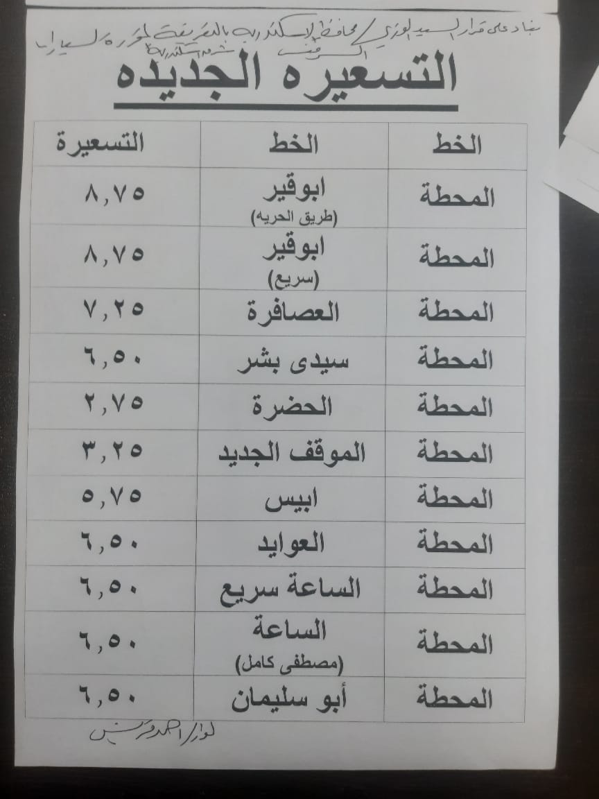 ننشر تعريفة الركوب الجديدة بمواقف الإسكندرية (صور)
