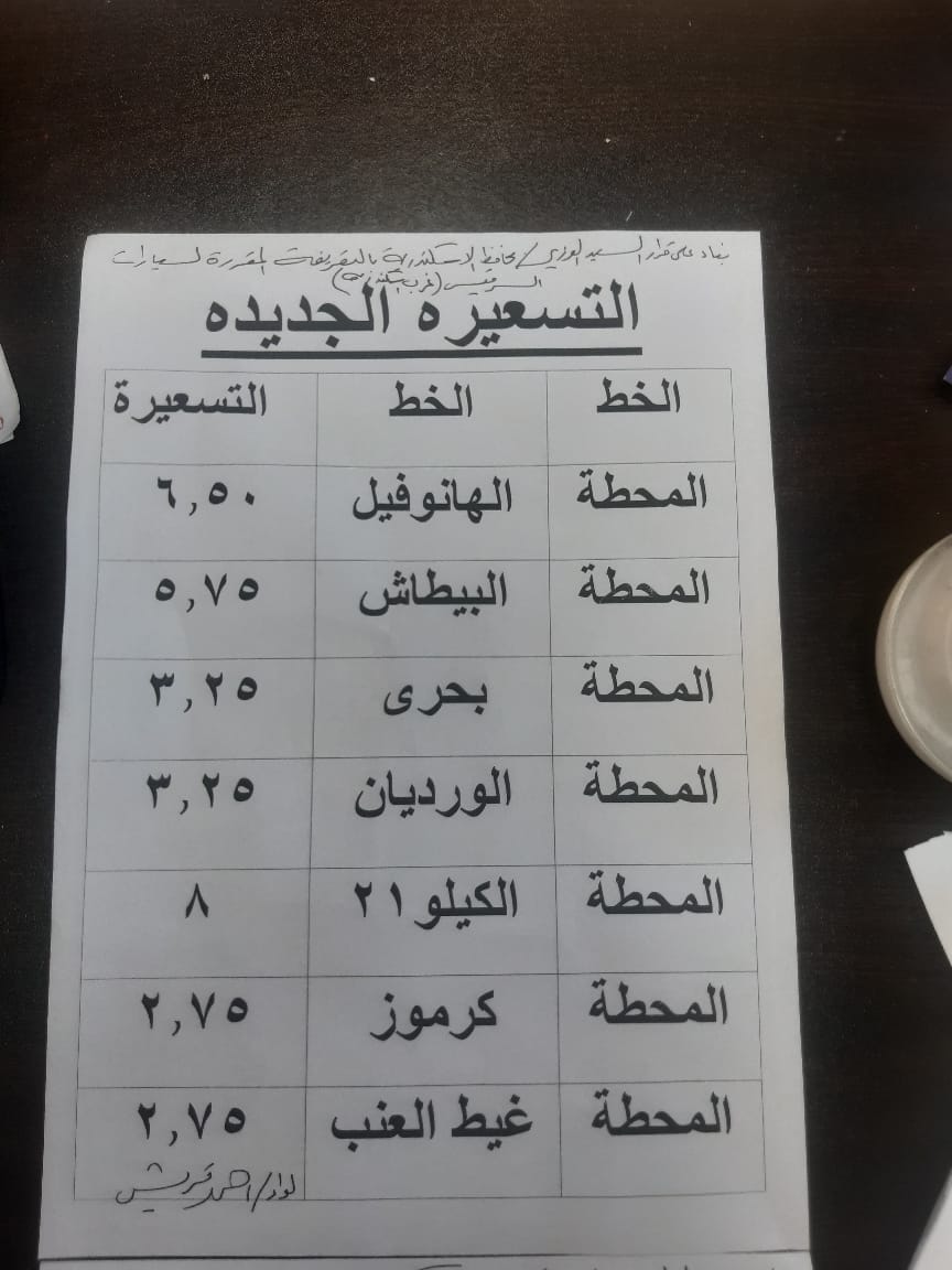 وأوضحوا أن الزيادات لا تمت للواقع بصلة وهي للدعاية والشو الحكومي فمثلا الأجرة الجديدة ٦.٥٠ جنيه للهانوفيل في حين أنها ٧ جنيهات قبل الزيادة والآن أصبحت ٧ ونصف، وكذلك الهانوفيل منشية، والمحطه بيطاش جاءت في التعريفة الجديدة ٥.٧٥ في حين انها قبل الزيادة ٦.٥٠ جنيه وبعد الزيادة أصبحت ٧ جنيهات، وهكذا في باقي خطوط الإسكندرية ال٤٤، وأكد عدد من الأهالي نفس كلام السائقين.