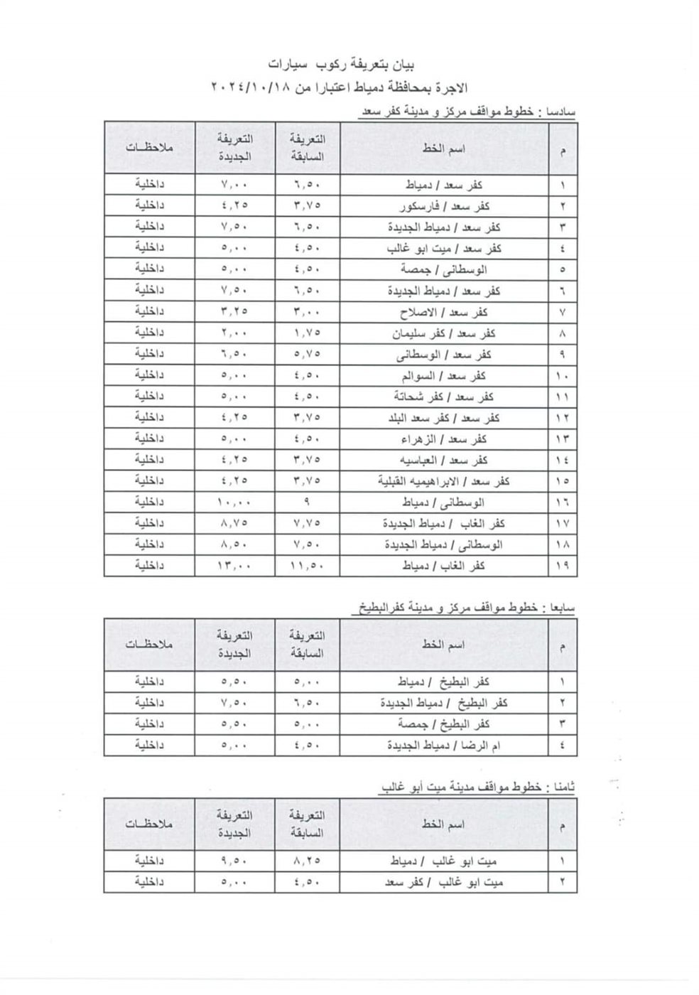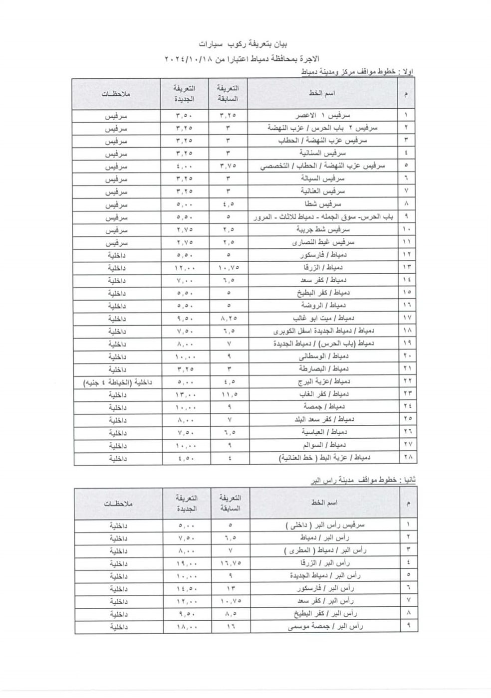 بعد زيادة أسعار البنزين، محافظ دمياط يعتمد تعديل تعريفة الركوب لسيارات الأجرة (صور )