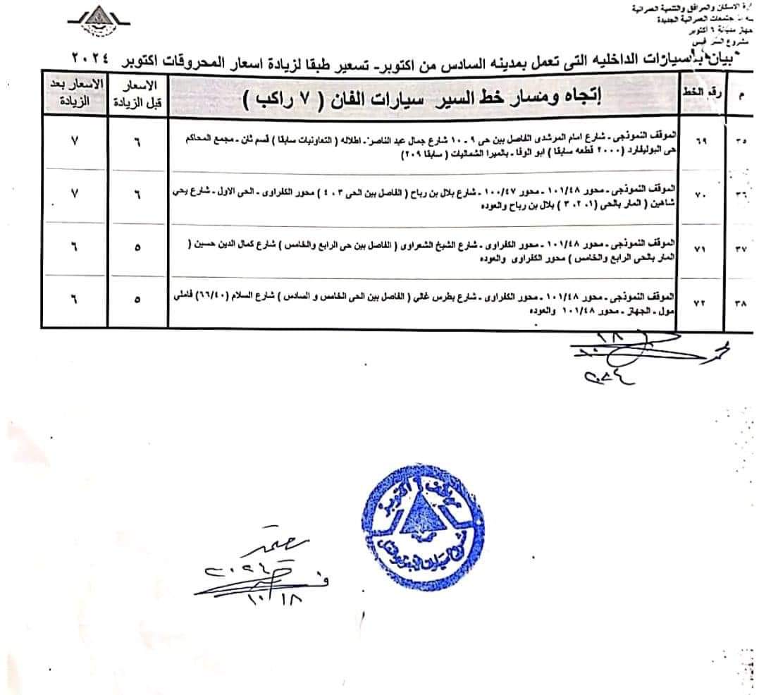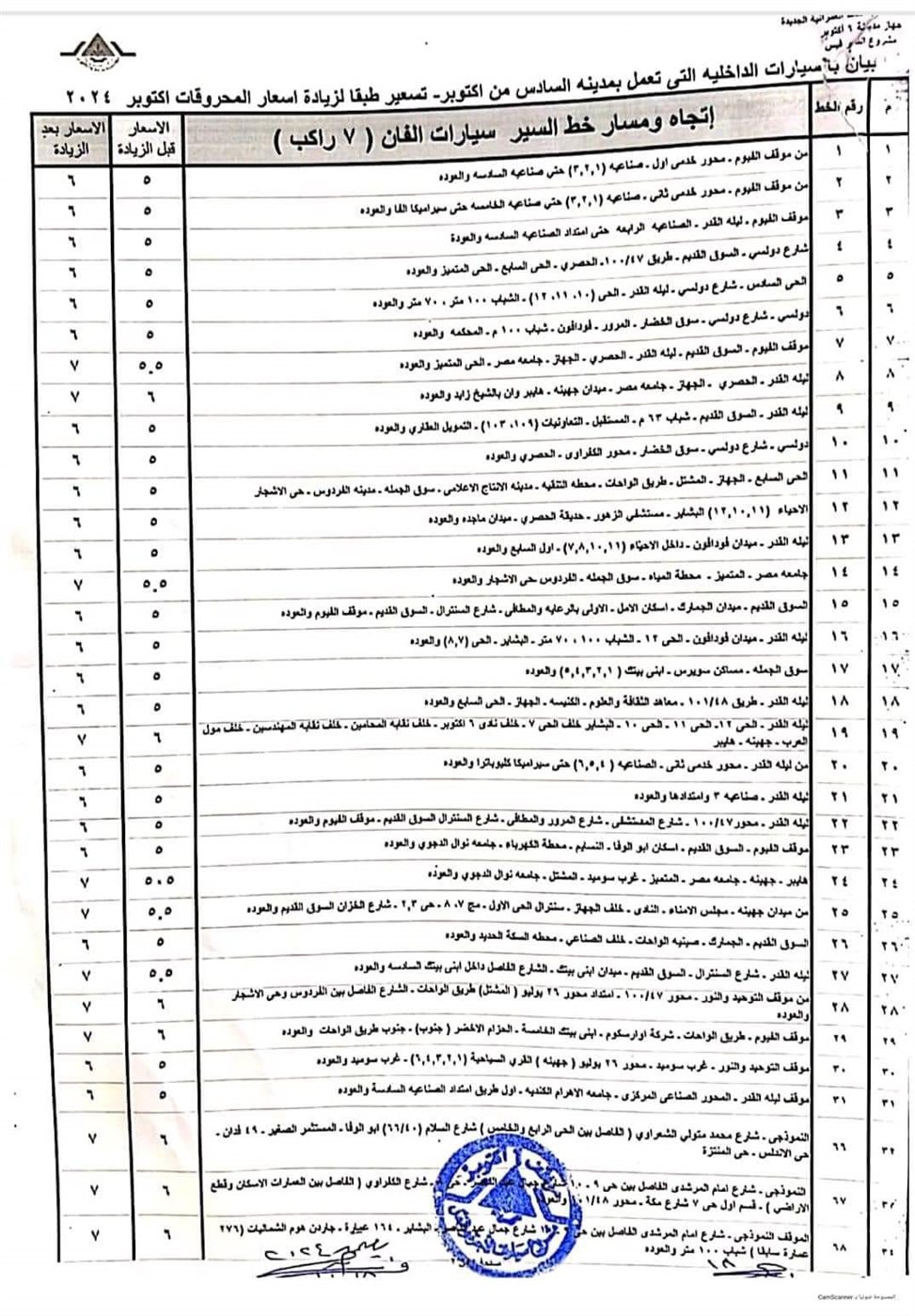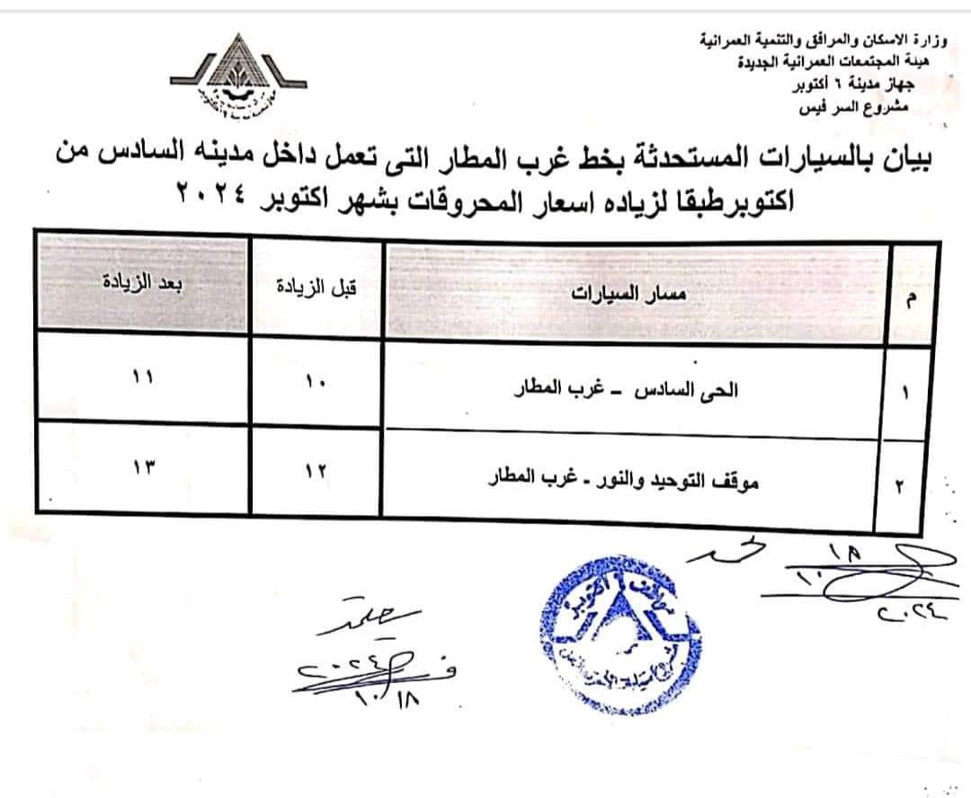 ننشر تعريفة الركوب الجديدة لسيارات السرفيس بمدينة 6 أكتوبر