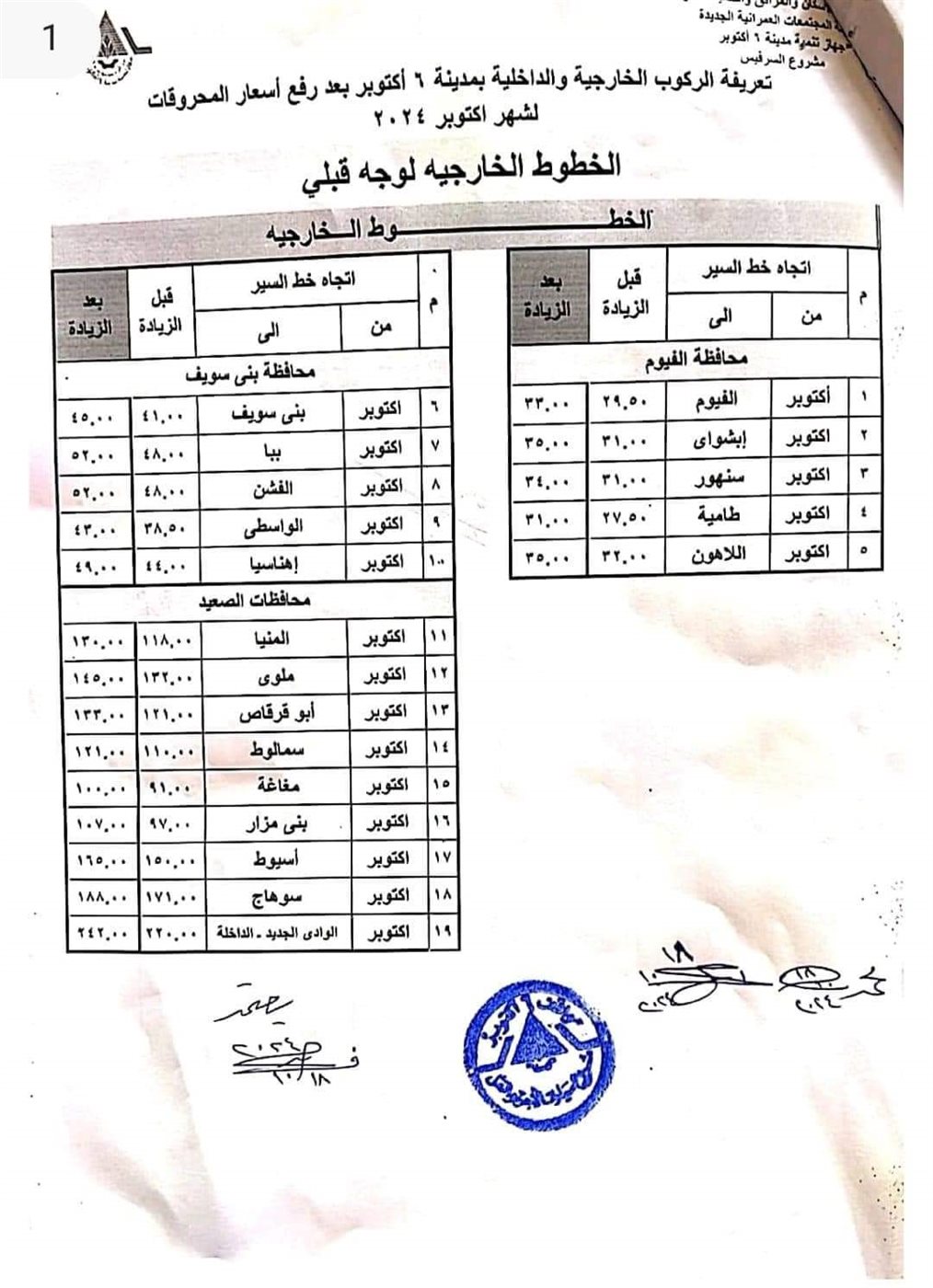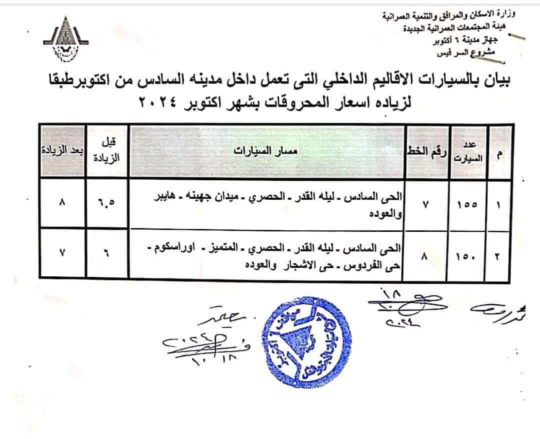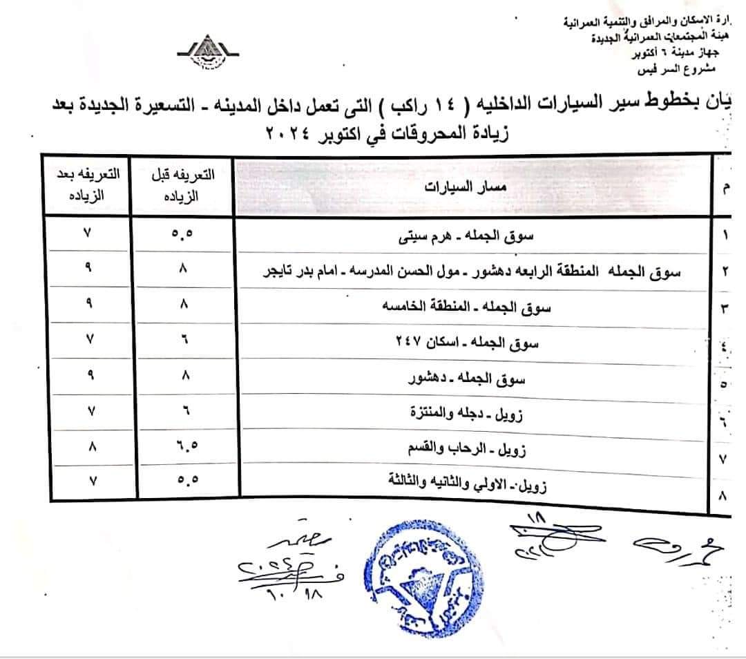 ننشر تعريفة الركوب الجديدة لسيارات السرفيس بمدينة 6 أكتوبر