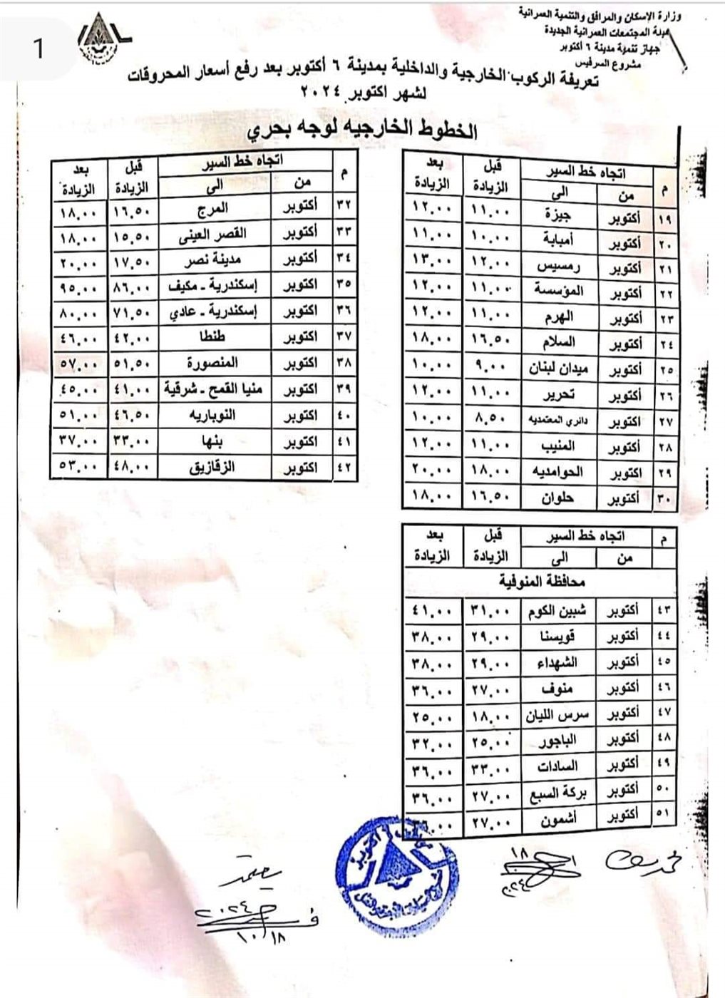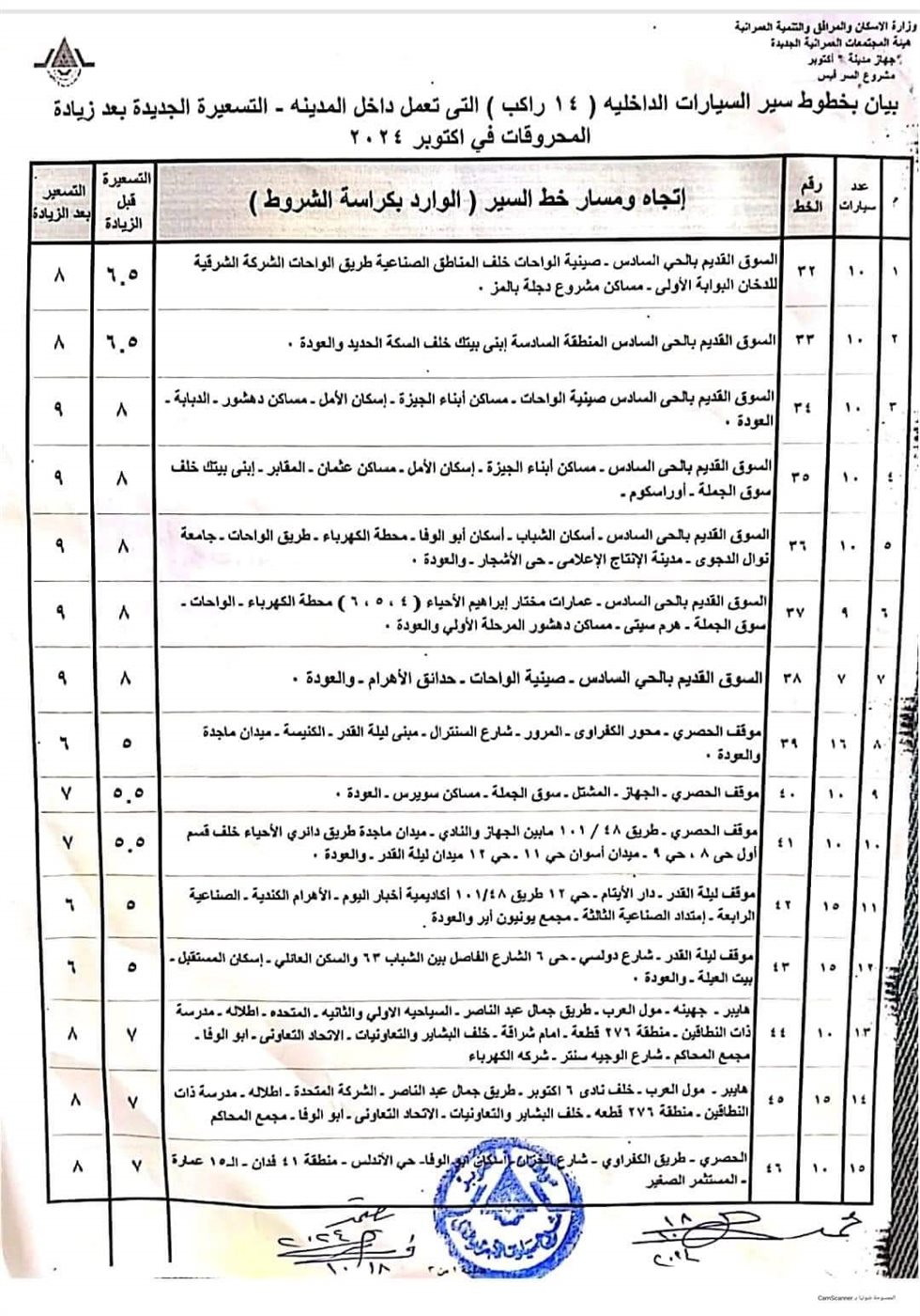 واعتمد المهندس عادل النجار محافظ الجيزة التعريفة الجديدة لسيارات السرفيس والنقل الجماعي الداخلية والخارجية، والتي يتم تطبيقها اعتبارًا من اليوم الجمعة وطبقًا للجداول المرفقة، وذلك في ضوء قرار لجنة التسعير التلقائي للمنتجات البترولية بوزارة البترول بتحريك أسعار المنتجات البترولية.