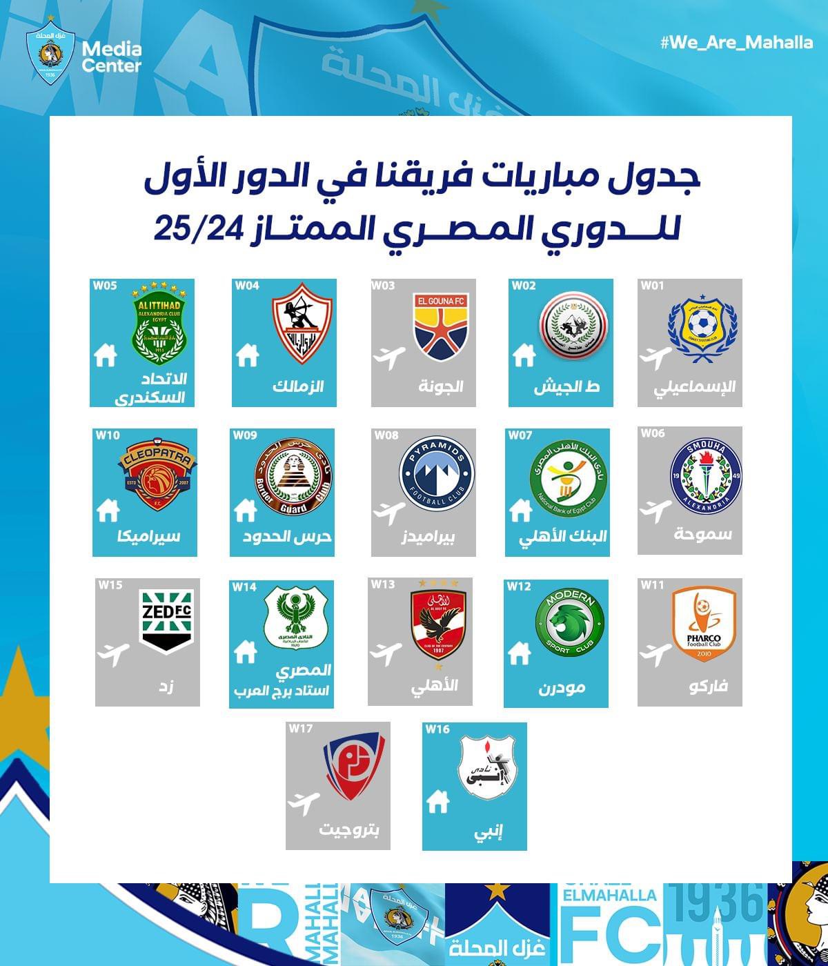جدول مباريات غزل المحلة في الدوري الممتاز 2024-2025