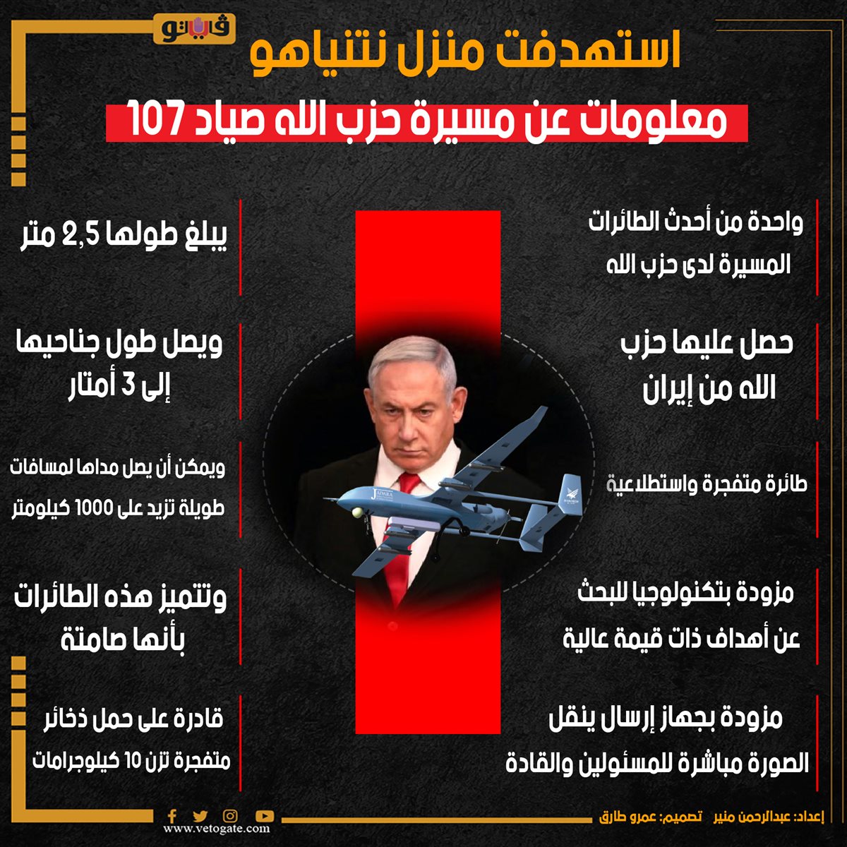 استهدفت منزل نتنياهو.. معلومات عن مسيرة حزب الله صياد 107 (إنفوجراف) الأحد 20/أكتوبر/2024 - 02:47 ص 10/20/2024 2:47:42 AM الطائرة صياد 107، فيتو عبدالرحمن منير تصميم :عمرو طارق شارك طباعة 18 حجم الخط شارك طباعة الطائرة صياد 107 حزب الله إيران
