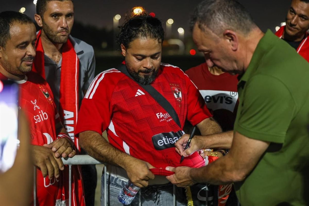 وحرص عدد من جماهير النادي الأهلي علي انتظار بعثة الفريق عقب نهاية المران لتقديم الدعم لكافة اللاعبين بجانب التقاط بعض الصور التذكارية برفقتهم.