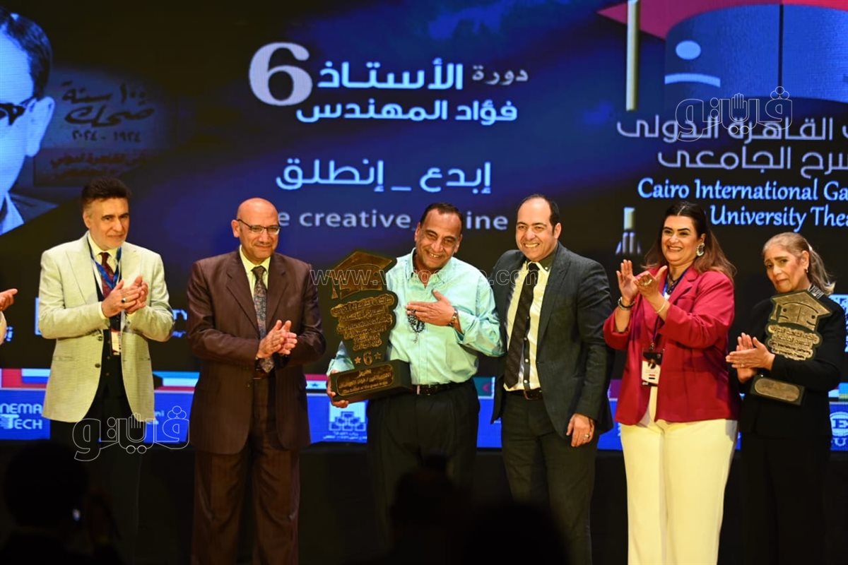 وأهدى ملتقى القاهرة الدولي للمسرح الجامعي درع دورته السابعة لروح الفنان الكبير الراحل فؤاد المهندس، والتي تحمل الدورة اسمه، حيث تسلم التكريم نجله محمد فؤاد المهندس.