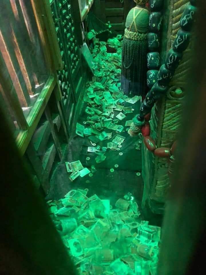 الصندوق عادة يمتلئ بالذهب والعملات المصرية من فئة الـ ١٠٠ والـ ٢٠٠ جنيه وأيضا تكون هناك عملات أجنبية.