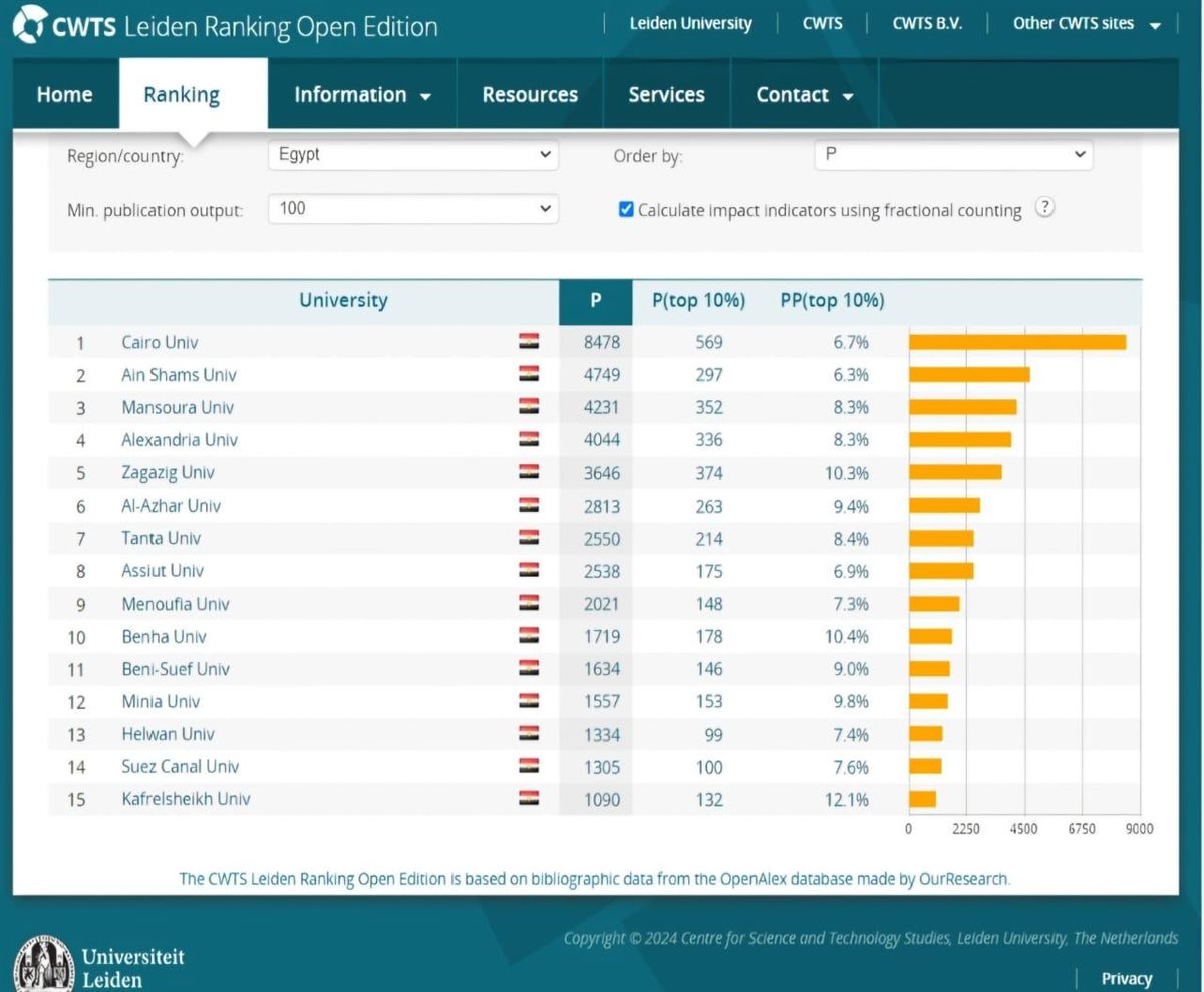 وأضاف رئيس جامعة القاهرة أن التصنيف الهولندي يعد تصنيفًا فريدًا يتيح مؤشرات متطورة وإنشاء نتائج بناءً على هذه المؤشرات واستكشافها من مناظير مختلفة متعددة الأبعاد منها التأثير العلمي والنشر المفتوح، كما يوفر معلومات حصرية وشفافة حول الأبحاث التي أجرتها الجامعة، مما يضمن استقلال التصنيف وعدم تحيزه لاعتماده على أحدث البيانات المبوبة في قاعدة Open Alex العالمية.
