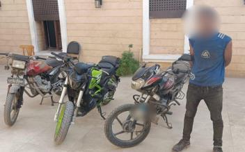 وبمواجهته اعترف بارتكاب 3 وقائع سرقة بذات الأسلوب، وتم بإرشاده ضبط كافة الدراجات النارية المستولى عليها.