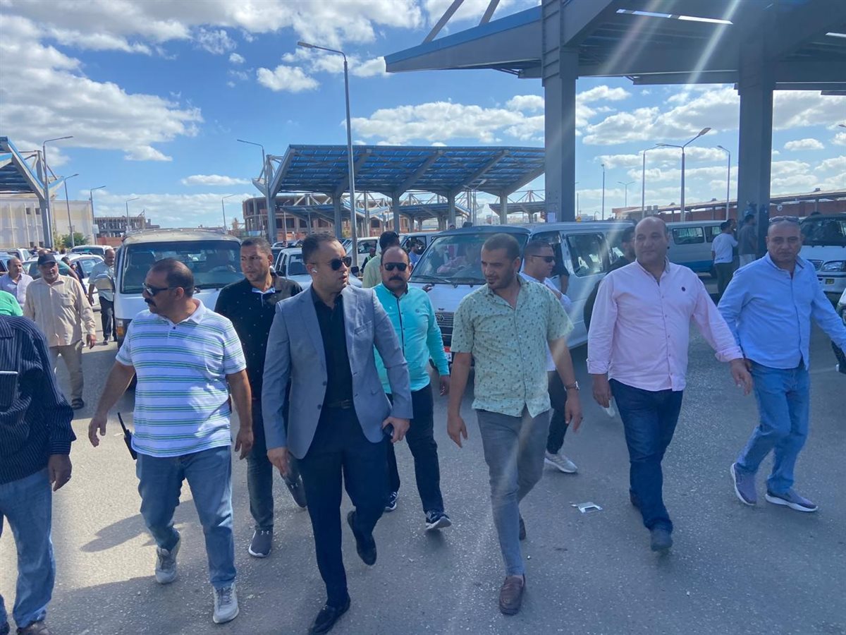 رئيس الجهاز يتابع سير العمل بالموقف الشرقى لسيارات الأجرة والسيرفيس بالمدينة