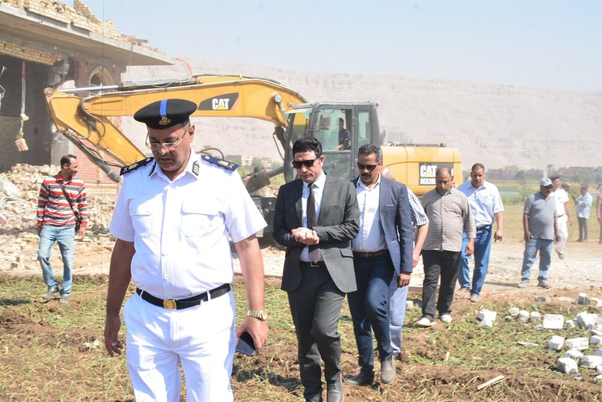 ولفت إلى إزالة قاعة أفراح وملعب خماسي وكافيه على مساحة أكثر من 2000 متر مربع على حرم نهر النيل، وقد تم إزالة حالة تعدي بالبناء عبارة عن دور مخالف بأحد الأبراج بمنطقة المشوادي الشرقي، وقد تمت الإزالة لجميع تلك المخالفات حتى سطح الأرض، مؤكدا على تنفيذ توجيهات القيادة السياسية وتوجهات الدولة بشأن إزالة التعديات على أملاك الدولة والأراضي الزراعية والبناء المخالف، والتصدي بكل حسم لكافة المخالفات وإزالة جميع التعديات.
