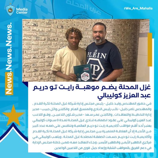 وقع اللاعب عبد العزيز كوليبالي على عقود انضمامه لنادي غزل المحلة لمدة ٥ سنوات كوليبالي يعتبر أحد أهم أكاديمية مواهب رايت تو دريم العالمية.