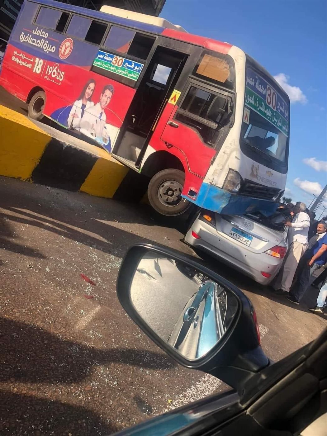 وبحسب شهود العيان فإنه تفاجئ المارة أثناء سير السيارات، بانحراف أتوبيس نقل عام رقم ه ق د 361، ودهس سيارة ملاكي بمن فيها تحمل لوحات معدنية رقم ع وي 8296، وأصيب ٥ أشخاص.