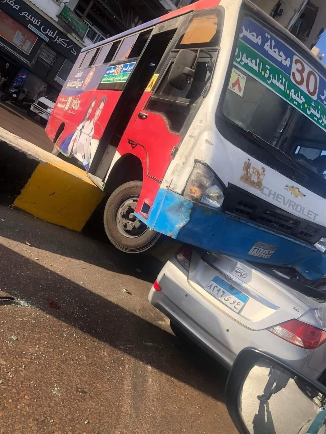 وسادت حالة من القلق والخوف، على طريق كورنيش الإسكندرية، خاصة وأن السيارات كانت تسير بسرعة منخفضة بسبب الزحام، وتفاجئ المارة، بعبور الأتوبيس للجزيرة الفاصلة بين الطريقين، ودهسه السيارة الملاكي التي تحطمت تماما.