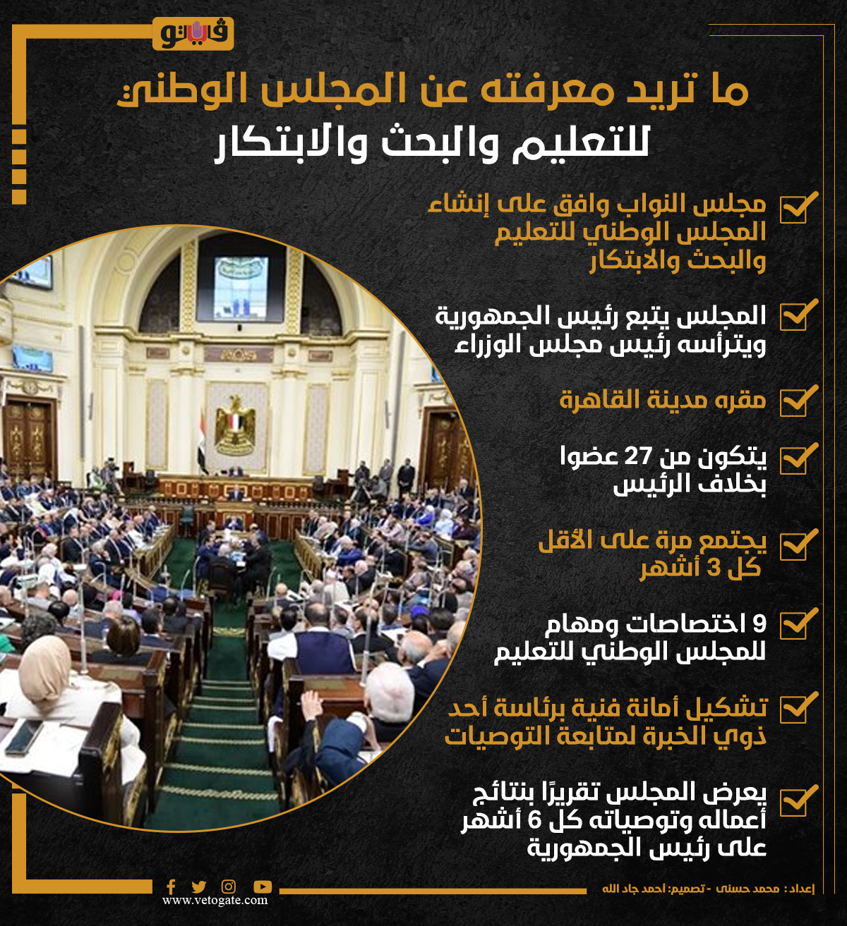 ما تريد معرفته عن المجلس الوطني للتعليم والبحث والابتكار (إنفوجراف) الإثنين 21/أكتوبر/2024 - 03:25 م 10/21/2024 3:25:17 PM محمد حسنى شارك طباعة 18 حجم الخط شارك طباعة