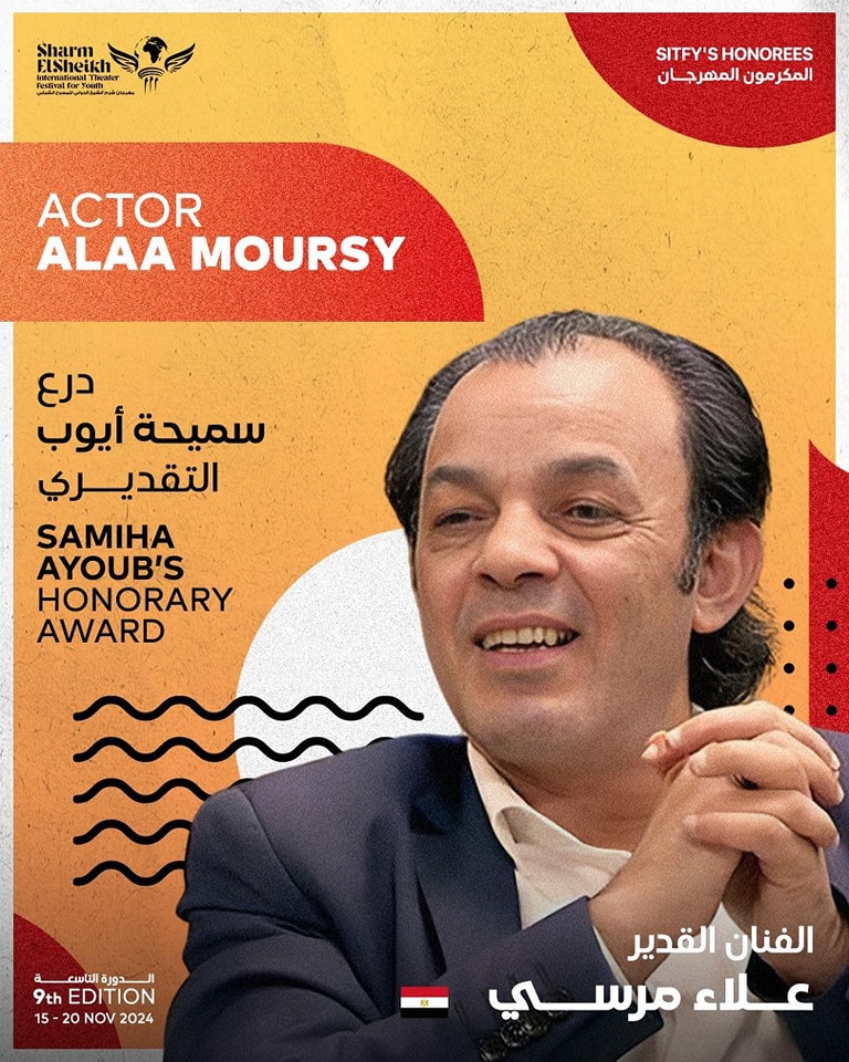 يكرم مهرجان شرم الشيخ الدولي للمسرح الشبابي برئاسة الفنان والمخرج مازن الغرباوي خلال دورته التاسعة، الفنان القدير علاء مرسي ويمنحه درع الفنانة سميحة أيوب التقديري خلال الدورة الجديدة، والتي مقررًا إقامتها في الفترة من 15 وحتي 20 نوفمبر 2024 بمدينة شرم الشيخ بمحافظة جنوب سيناء.