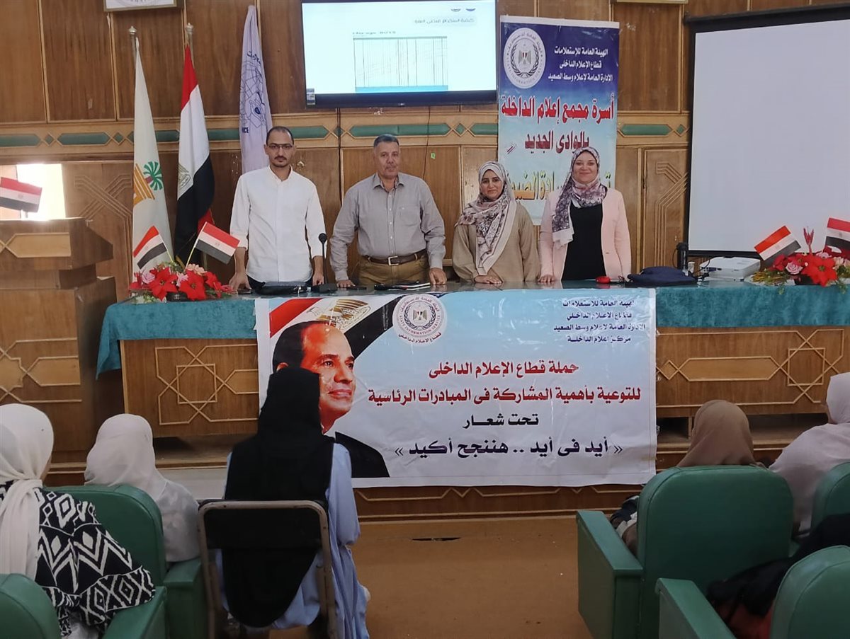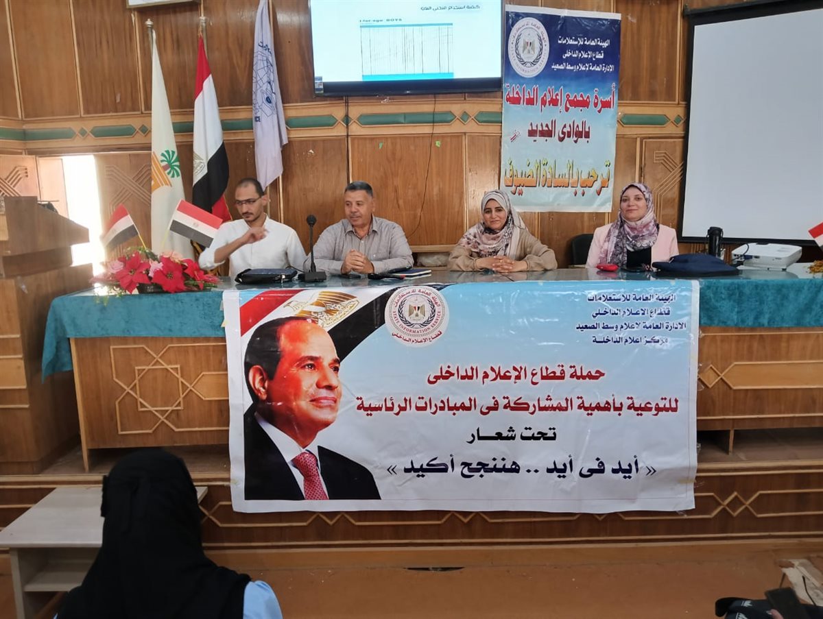 نظم مركز إعلام الداخلة بمحافظة الوادي الجديد، اليوم الثلاثاء، جلسة حوارية تحت عنوان " الكشف المبكر عن الأمراض الوراثية والحفاظ على صحة الأجيال الجديدة"، ضمن فعاليات الحملة الإعلامية الموسعة التي أطلقها قطاع الإعلام الداخلي بالهيئة العامة للاستعلامات تحت شعار " إيد في إيد.. هننجح أكيد "، تحت رعاية رئيس الهيئة الكاتب الصحفي ضياء رشوان، وإشراف رئيس قطاع الإعلام الداخلي بالهيئة الدكتور أحمد يحيى، كما جاءت هذه الندوة في إطار التوعية المتواصلة بالمبادرة الرئاسية للتنمية البشرية " بداية جديدة لبناء الإنسان ".