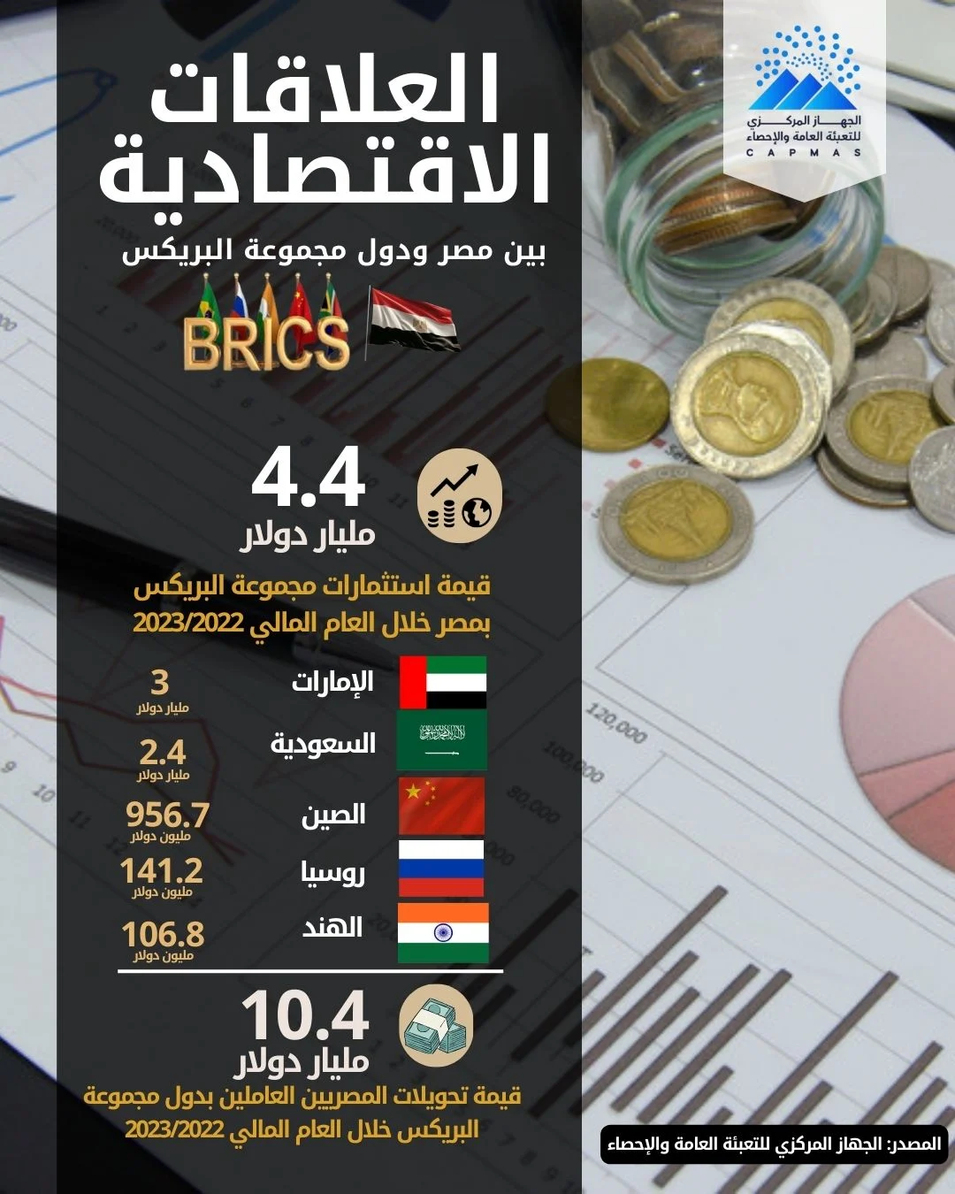 الإحصاء يرصد حجم العلاقات الاقتصادية بين مصر وتجمع بريكس (إنفوجراف)