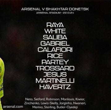 وشهد تشكيل ارسنال استمرار غياب نجم الفريق بوكايو ساكا، وجاء كالتالي:"