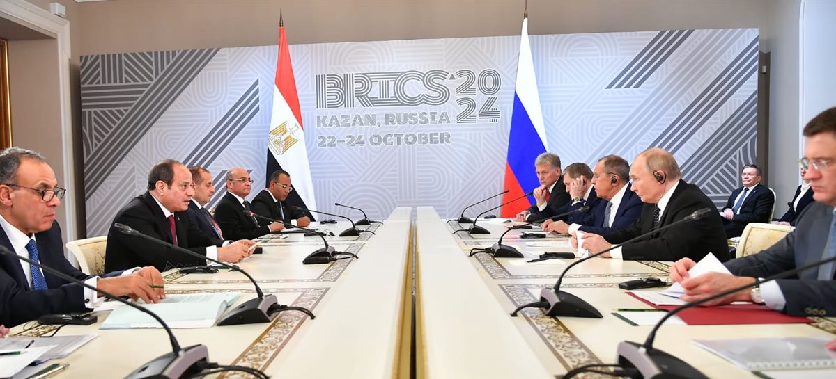 بدوره أعرب الرئيس عن تقديره للمشاركة في القمة التي تستضيفها روسيا، والتي تأتي في إطار الحرص المصري على الانخراط في فعاليات وأطر التجمع، مثنيًا على الجهد الذي بذلته روسيا خلال فترة رئاستها للتجمع.
