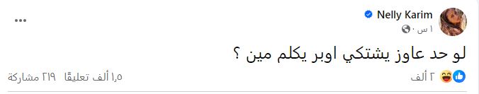 وقالت نيللي كريم على صفحتها الشخصية بـ"فيس بوك": “لو حد عاوز يشتكي أوبر يكلم مين؟”.