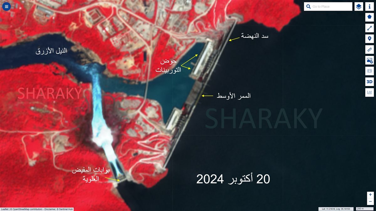 وأضاف: "أما في حال عدم التشغيل تكون المياه هادئة تماما فى حوض التوربينات دون تغير في اللون وهذا الذي ظهر على جميع الصور الفضائية منذ 5 سبتمبر الماضى. تم تركيب أربع توربينات اثنين في فبراير وأغسطس 2022 ورقمى 9، 10 فى 24 أغسطس 2024 والمفروض أنهم جميعًا جاهزون للتشغيل".