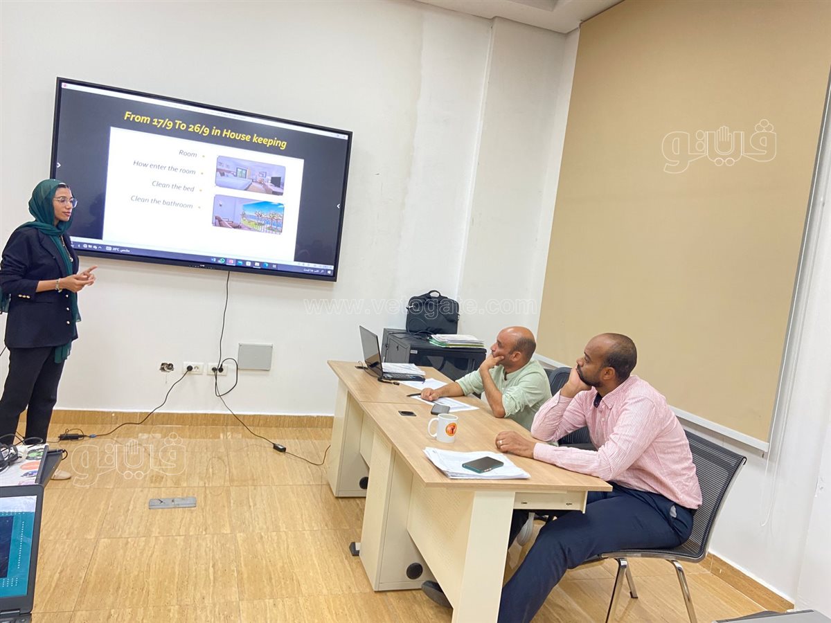 وشملت المناقشة عرضًا تفصيليًّا لتجارب الطلاب في مجالات مختلفة، حيث استعرض طلاب برنامج تكنولوجيا الخدمات الفندقية تدريبهم في المكاتب الأمامية والإشراف الداخلي على الغرف، فيما قدم طلاب برنامج تكنولوجيا الأغذية والمشروبات عرضًا عن تجاربهم في المطبخ والمطاعم.
