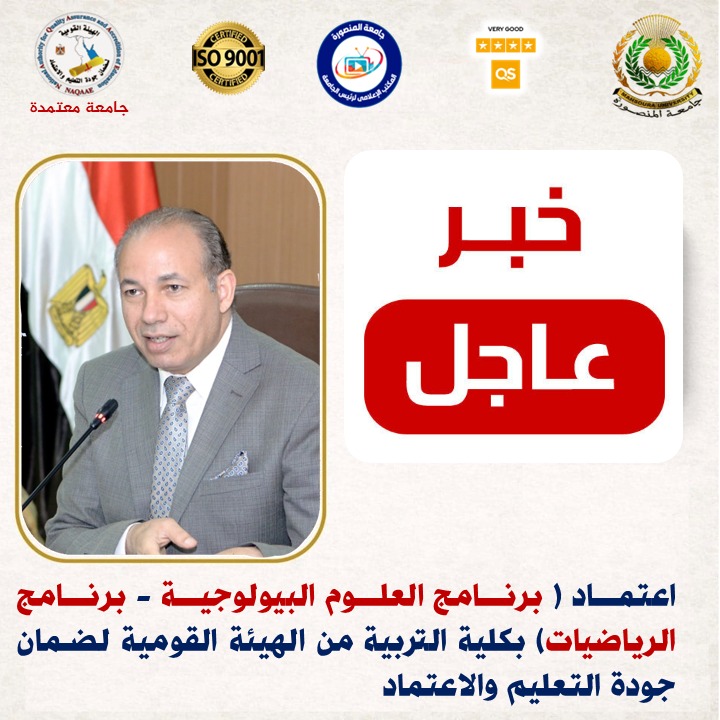 أعلن الدكتور شريف يوسف خاطر، رئيس جامعة المنصورة، اعتماد (برنامج العلوم البيولوجية - برنامج الرياضيات) بكلية التربية من الهيئة القومية لضمان جودة التعليم والاعتماد، وذلك بعد صدور قرار مجلس إدارة الهيئة في اجتماعه الدوري اليوم برئاسة الدكتور علاء عشماوي، رئيس الهيئة القومية لضمان الجودة والاعتماد.