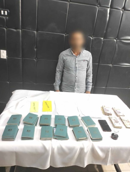 كما تم ضبط (مالك ومدير شركة لإلحاق العمالة بالخارج "لأحدهما معلومات جنائية"- كائنة بمنطقة زهراء مدينة نصر)، وعثر بداخل الشركة على (جواز سفر - عدد من صور جوازات السفر لراغبى العمل بالخارج – 2 أكلاشيه خاص بالشركة - 3 دفتر إيصالات استلام نقدية – 2 هاتف محمول للتواصل مع العملاء– مبالغ مالية).