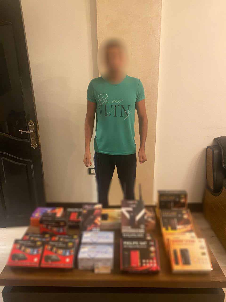 وعقب تقنين الإجراءات تم استهداف المحل وأمكن ضبط المتهم، وعثر بداخل المحل على (20 جهاز ريسيفر ماركات مختلفة ومجهزين لفك شفرات القنوات الفضائية المشفرة - قطعتى LAN لفك تشفير القنوات الفضائية المشفرة "بدون ترخيص")، وتم اتخاذ الإجراءات القانونية وجار العرض على النيابة العامة.