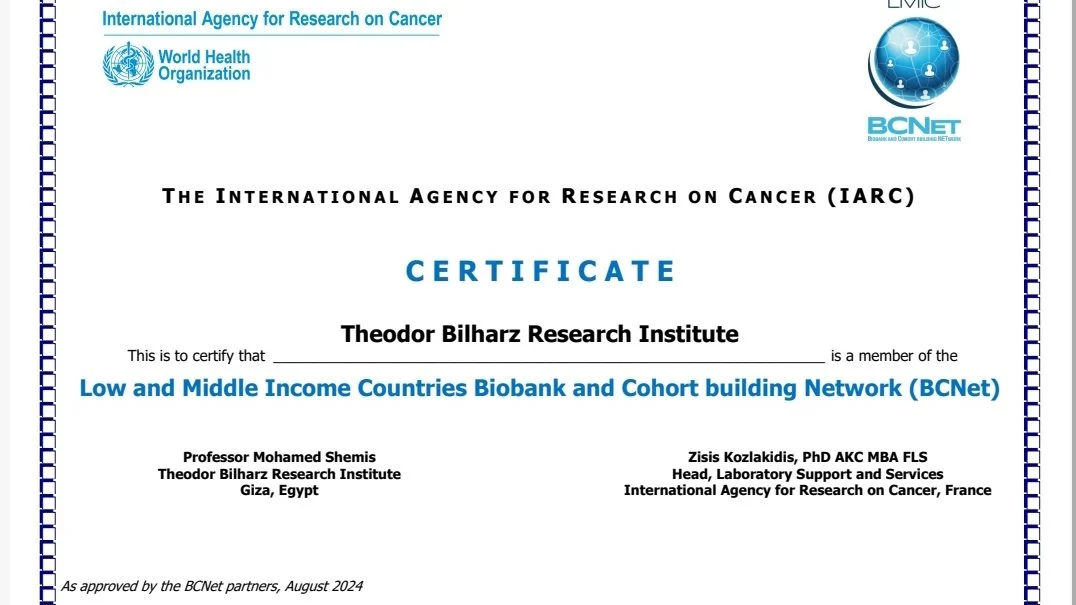 انضمام البنك الحيوي بمعهد تيودور بلهارس لشبكة البنوك الحيوية بالوكالة الدولية لأبحاث السرطان
