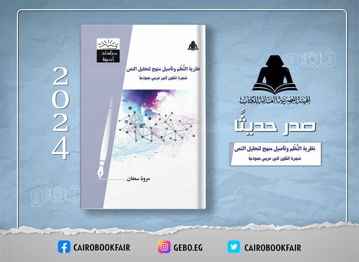 أصدرت الهيئة المصرية العامة للكتاب، برئاسة الدكتور أحمد بهي الدين، ضمن إصدارات سلسلة دراسات أدبية كتاب «نظرية النُظُم وتأصيل منهج لتحليل النص شجرة الكون لابن عربي نموذجا» لـ مروة سعفان.
