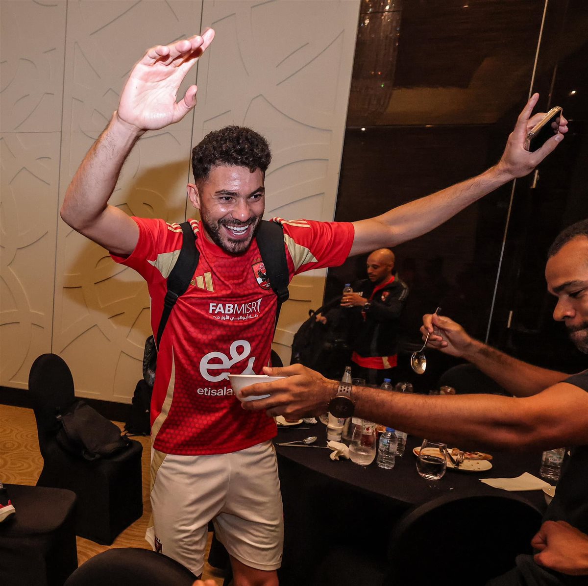 ونشرت الصفحة الرسمية للنادي الأهلي عدة صور من احتفالات لاعبي الفريق، وكتبت عليها “ ع السوبر كله يرقص ”.