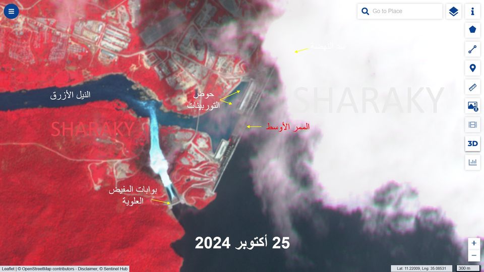 وكتب “شراقي” على صفحته الشخصية ب"فيس بوك تحت عنوان “استمرار توقف التوربينات وتدفق المياه من بوابتين من المفيض العلوى فى سد النهضة” وقال:" توقفت التوربينات الأربعة منذ حوالى شهرين، مع استمرار فتح بوابتين فقط من بوابات المفيض العلوية الست بتدفق أقل قليلا عن الأسبوع الماضى وهو حوالى 150 مليون م3/يوم".