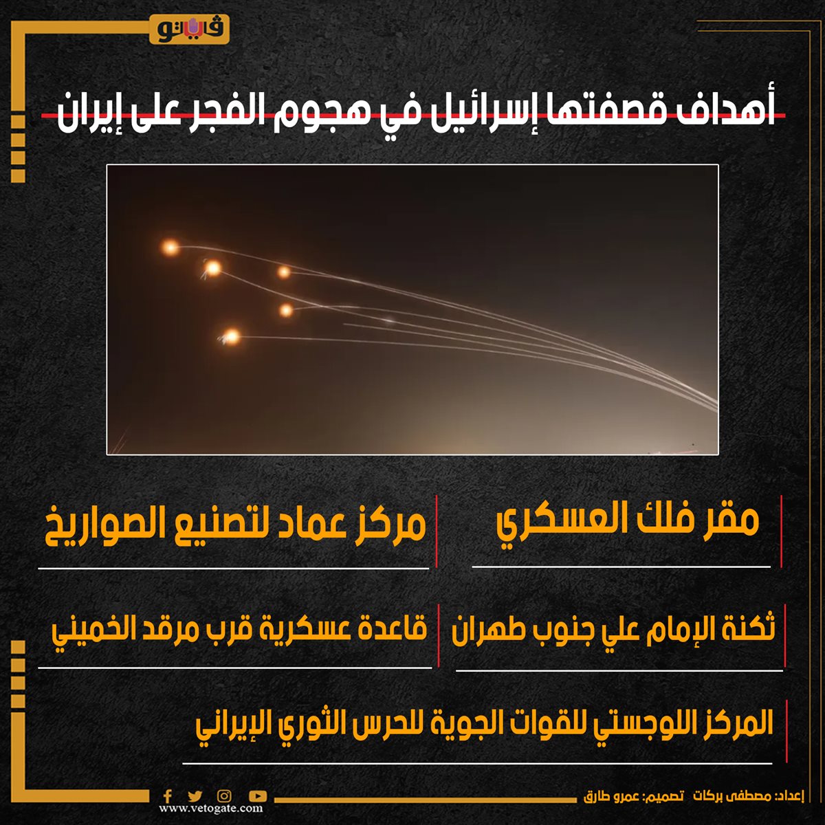 أهداف قصفتها إسرائيل في هجوم الفجر على إيران (إنفوجراف) السبت 26/أكتوبر/2024 - 07:23 ص 10/26/2024 7:23:27 AM الهجوم الإسرائيلي على إيران، فيتو مصطفى بركات تصميم :عمرو طارق شارك طباعة 18 حجم الخط شارك طباعة مركز عماد مقر فلك العسكري ثكنة الإمام الهجوم الاسرائيلي إيران