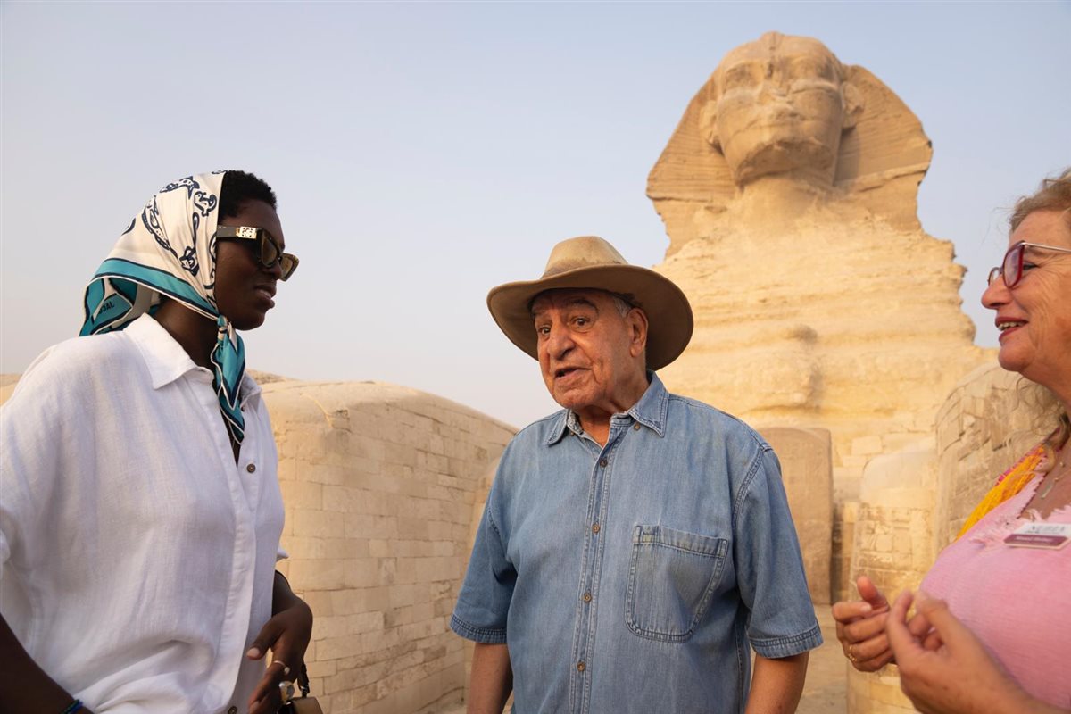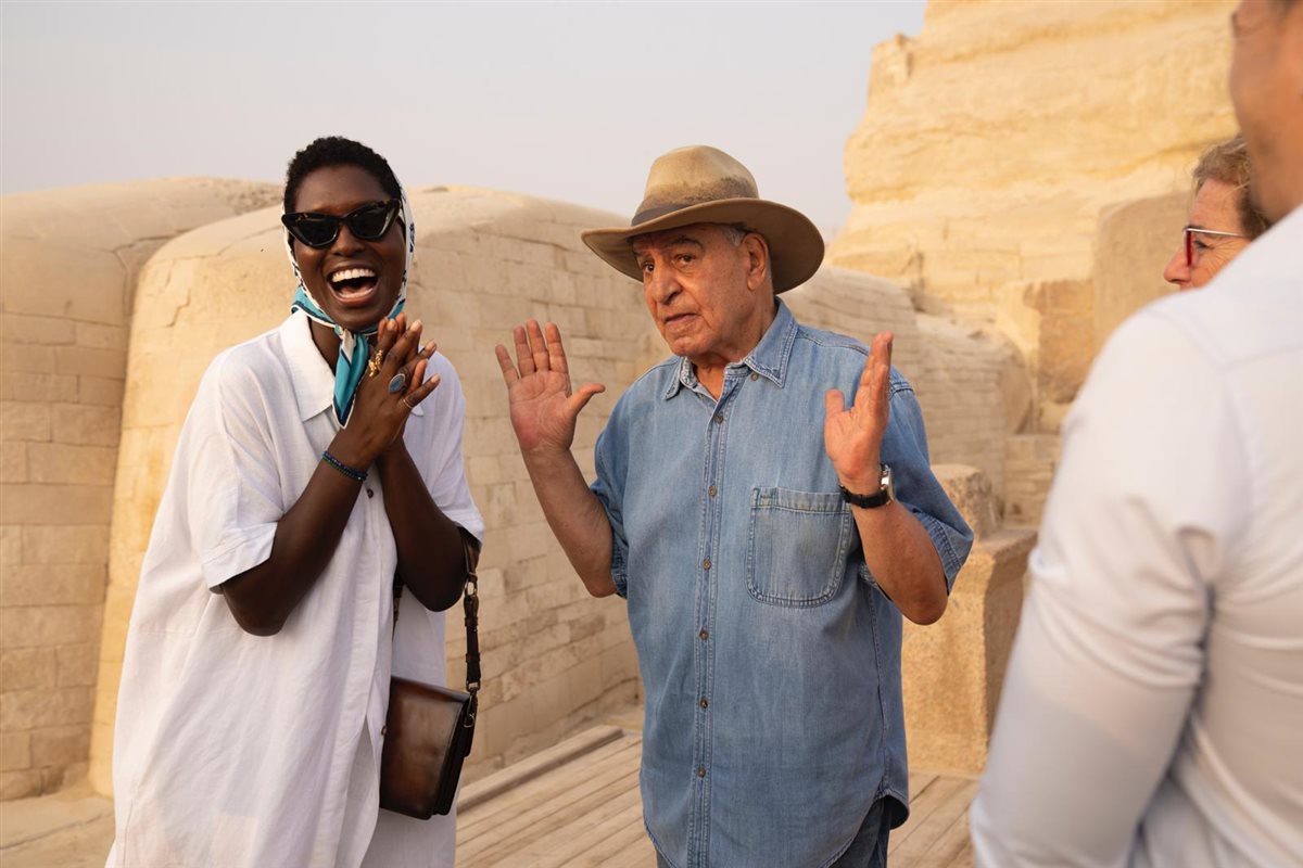 زاهي حواس يشرح أسرار الأهرامات وأبو الهول للممثلة الأمريكية جودي تيرنر