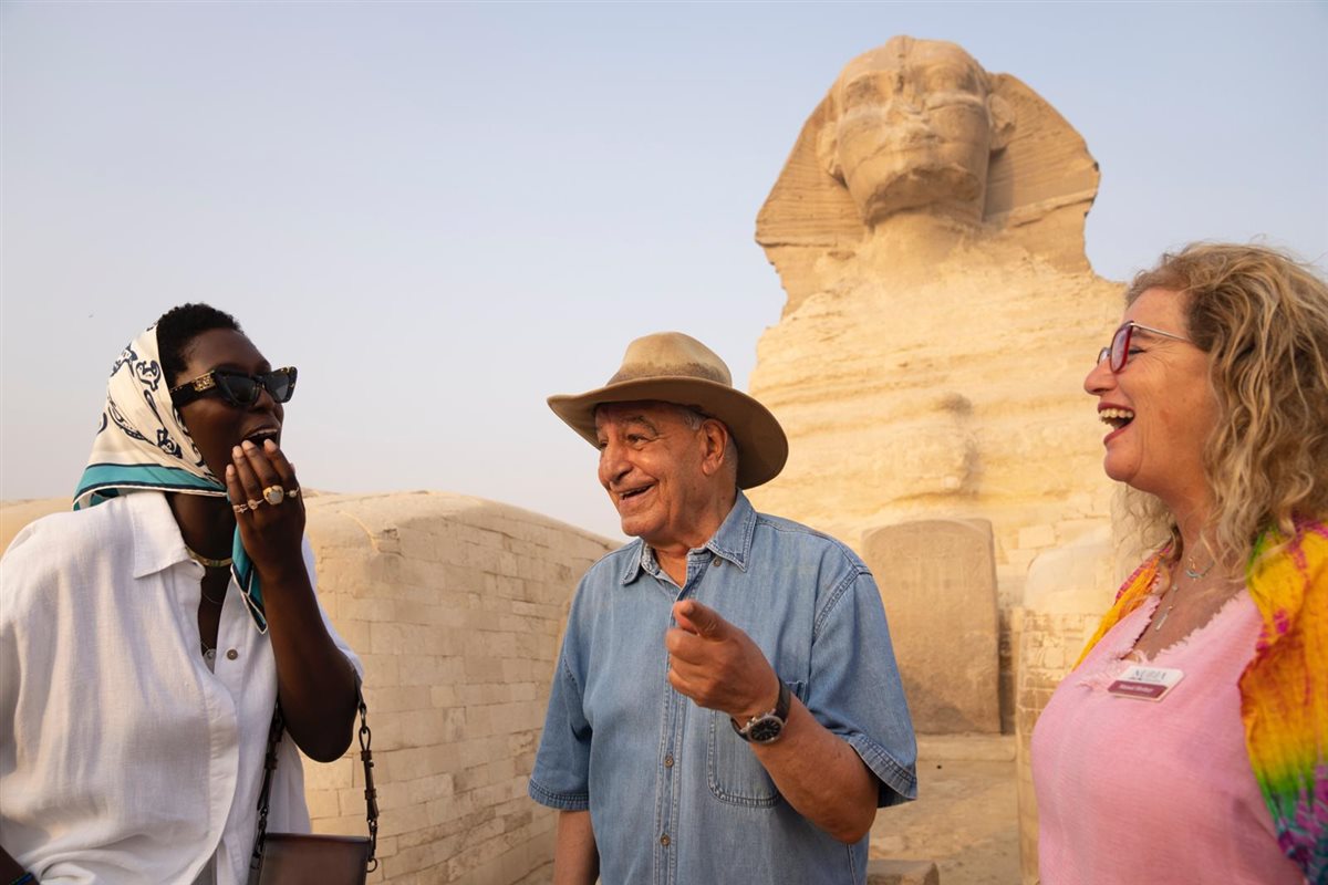 التقى عالم الآثار المصرية الدكتور زاهي حواس، الممثلة الأمريكية جودي تيرنر أمام تمثال أبو الهول والوفد المرافق لها.
