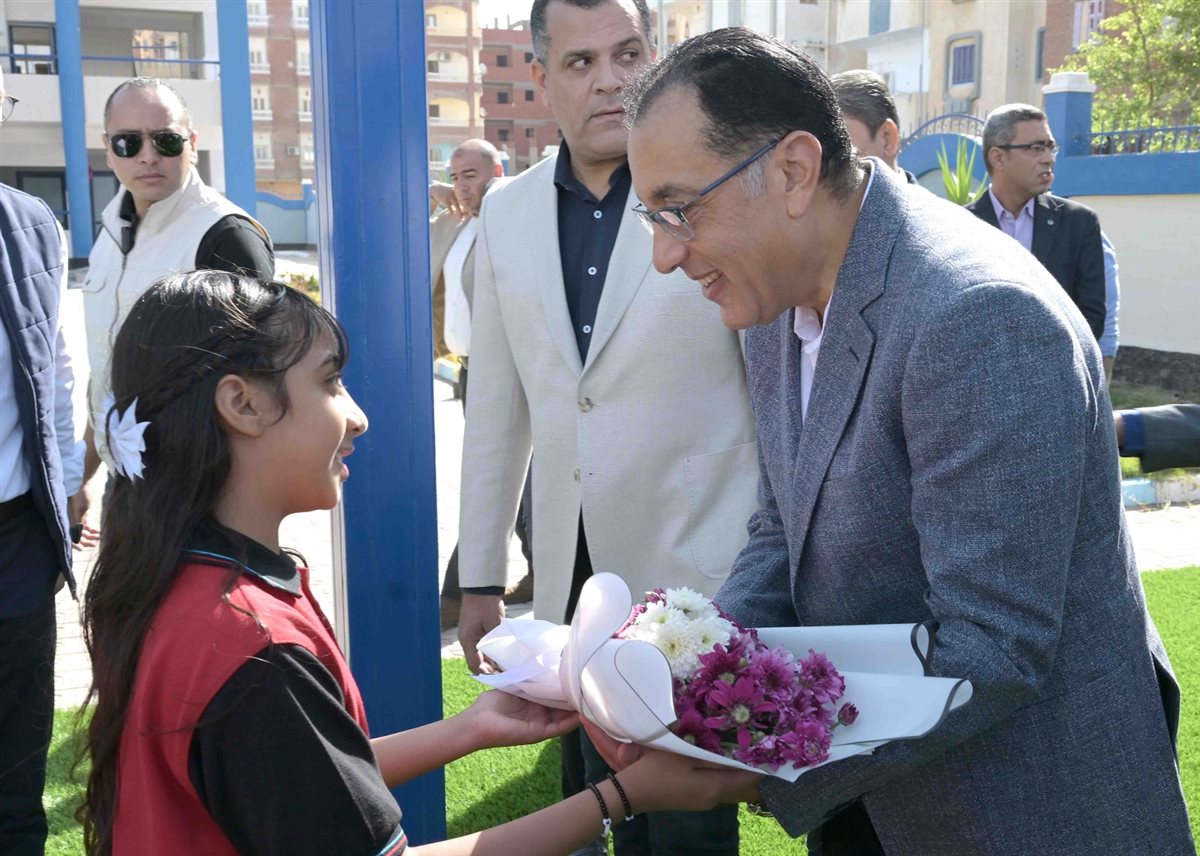 وكان في استقبال رئيس الوزراء لدى وصوله المدرسة ياسر عمارة، وكيل وزارة التربية والتعليم والتعليم الفني بمحافظة السويس، وسوزان يوسف، مديرة المدرسة، حيث قدّمت إحدى الطالبات بالمدرسة باقة ورد للدكتور مصطفى مدبولي؛ ترحيبًا به في المدرسة.