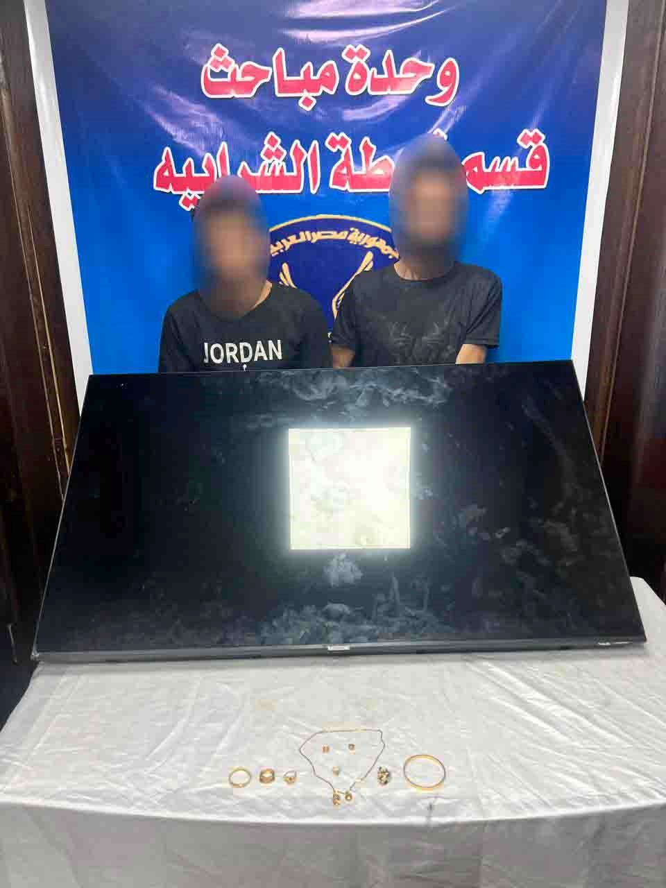 كما تم ضبط (عاطلَين "لأحدهما معلومات جنائية"- مقيمان بمحافظة القليوبية)، لارتكابهما واقعة سرقة (مشغولات ذهبية - شاشة تليفزيون) من داخل مسكن بدائرة قسم شرطة الشرابية وبحوزتهما المسروقات المستولى عليها.