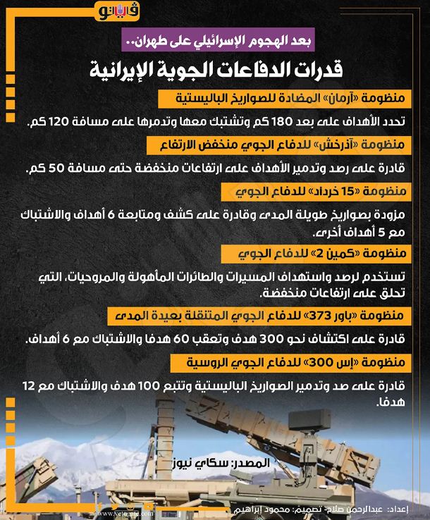 ونفت وسائل إعلام إيرانية، صباح اليوم السبت، "مزاعم" جيش الاحتلال الإسرائيلي باستهداف "20 نقطة" في إيران، أو الأنباء التي تحدثت عن مشاركة 100 طائرة حربية إسرائيلية في الهجوم الذي استهدف إيران فجر اليوم.