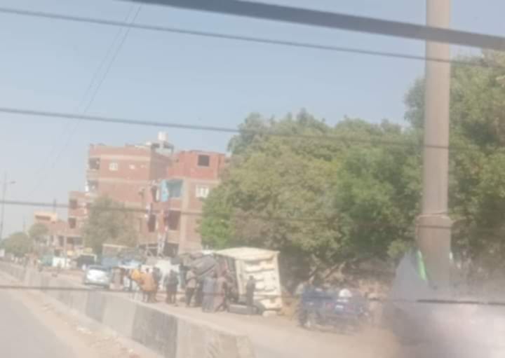 مصرع شخص وإصابة آخر في حادث انقلاب تريلا في الجيزة (صور)