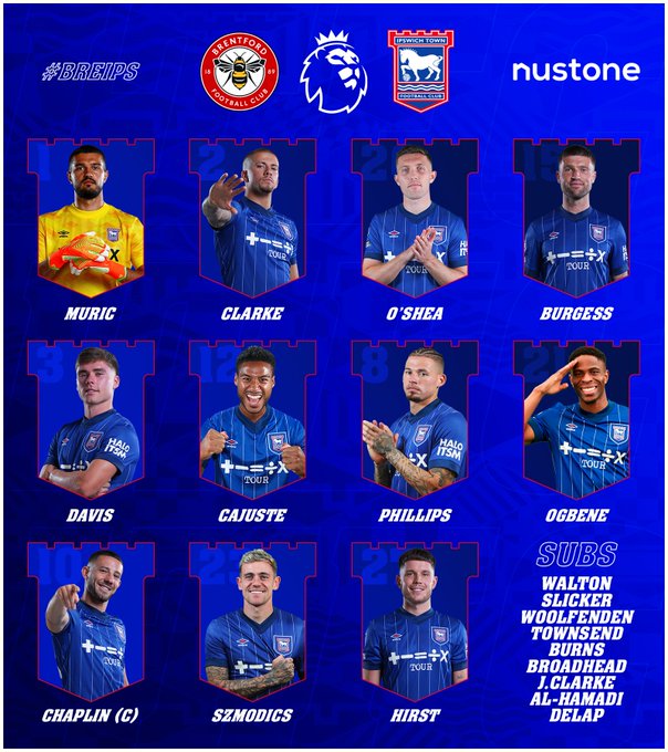 أعلن الجهاز الفنى لفريق إيبسويتش تاون الإنجليزي تشكيل الفريق لمواجهة برينتفورد، في الخامسة من مساء اليوم السبت، ضمن منافسات الجولة التاسعة من مسابقة الدوري الإنجليزي.