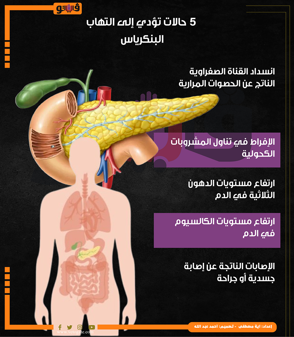 5 حالات تؤدي إلى التهاب البنكرياس (إنفوجراف) الإثنين 28/أكتوبر/2024 - 09:30 ص 10/28/2024 9:30:19 AM التهاب البنكرياس آية مصطفى شارك طباعة 18 حجم الخط شارك طباعة ارتفاع مستويات الكالسيوم في الدم التهاب البنكرياس البنكرياس مستويات الدهون الثلاثية سرطان البنكرياس تناول المشروبات الكحولية