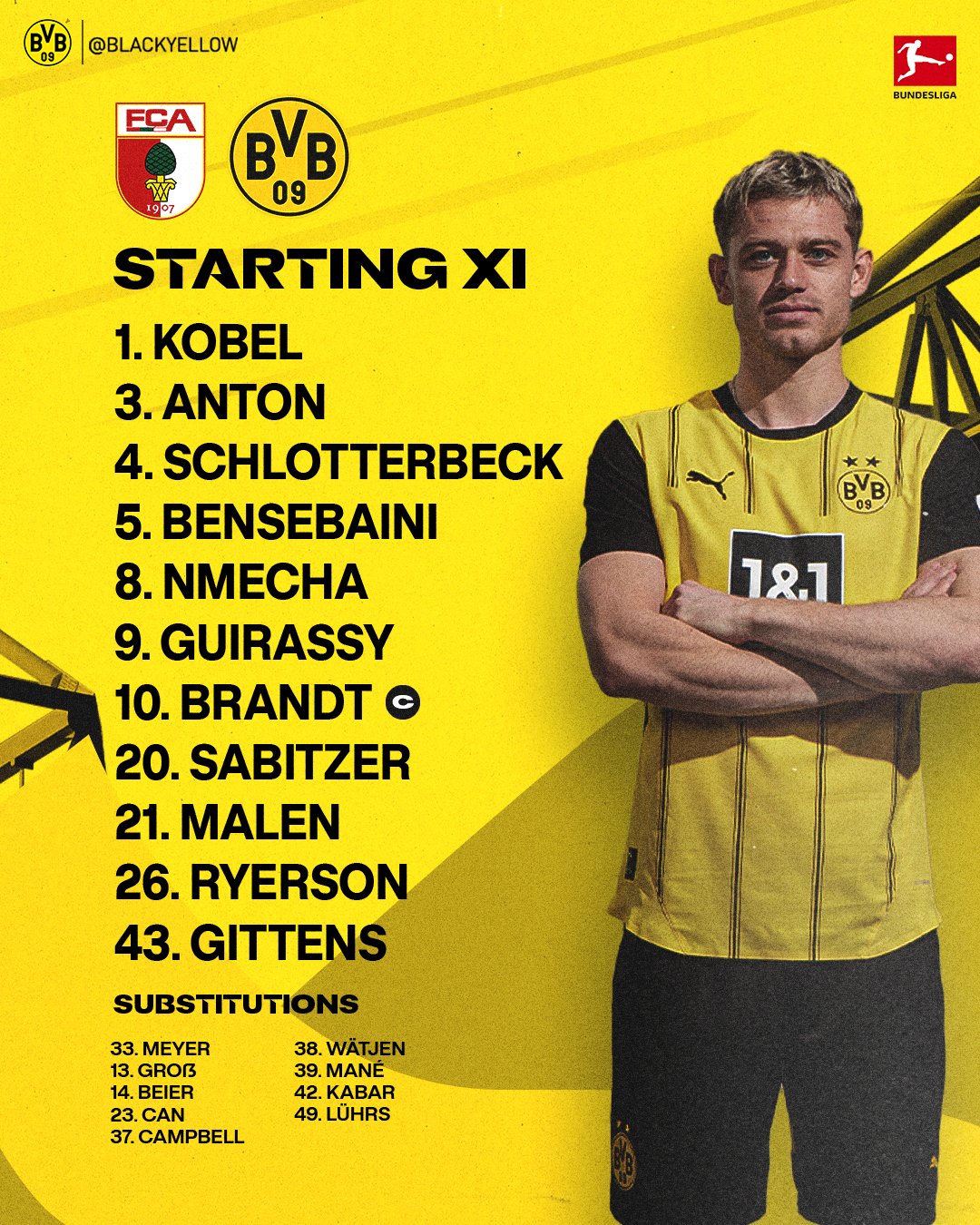 وتقدم فريق او بروسيا دورتموند بهدف في الدقيقة الرابعة عن طريق دونيل مالين، فيما تعادل لاوجسبورج اليكس كلود في الدقيقة 25.