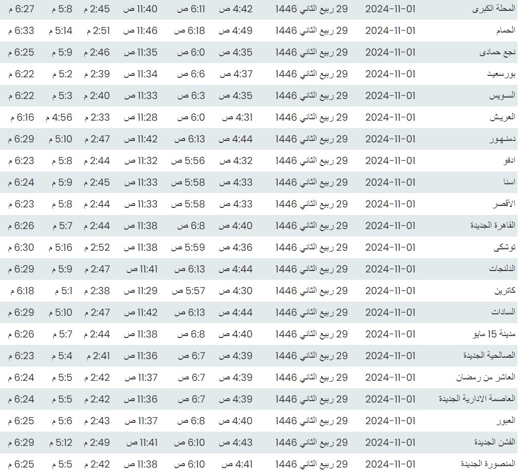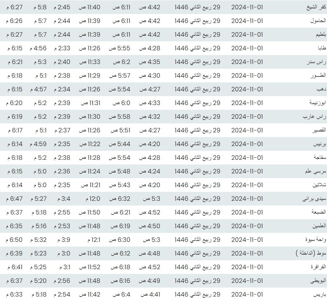 وفيما يلي مواقيت الصلاة، لعدد من مدن ومحافظات الجمهورية من واقع بيانات الهيئة العامة للمساحة