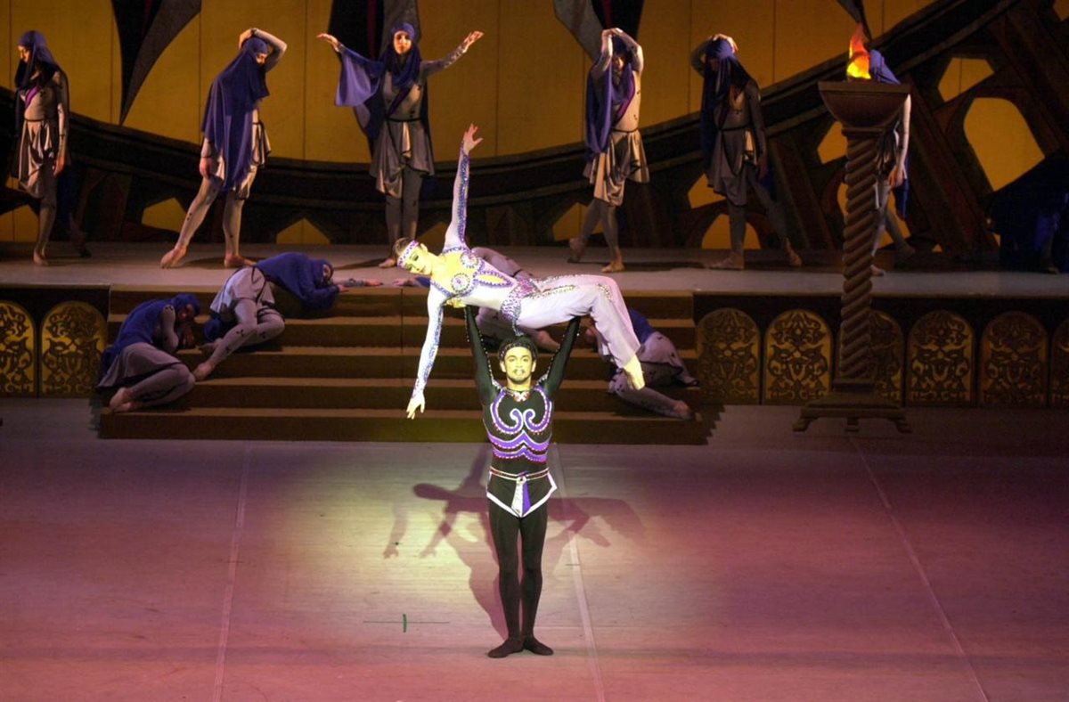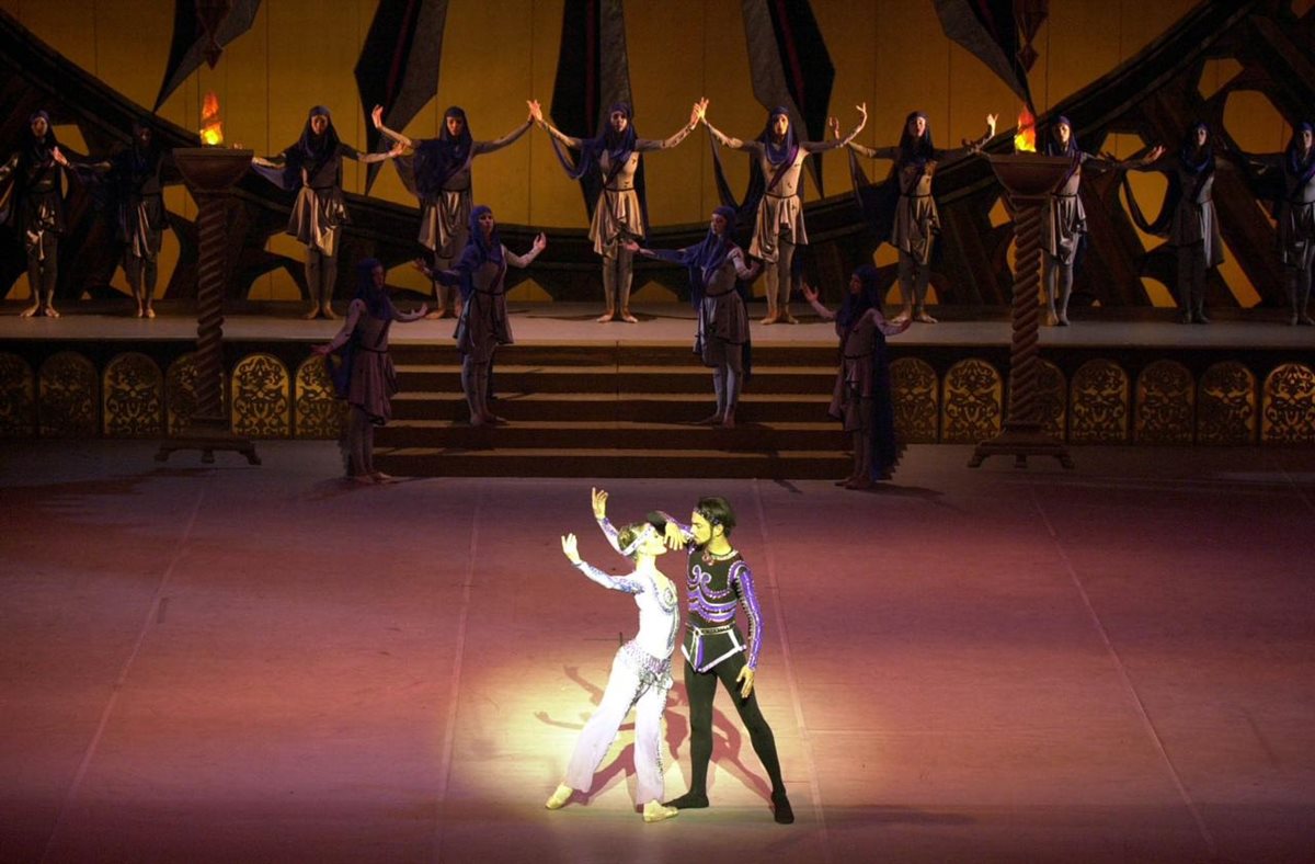 الباليه موسيقي فيكرت أميروف، تصميم رقصات نائلة ناظيروفا، إضاءة ياسر شعلان، مناظر محمد الغرباوي.