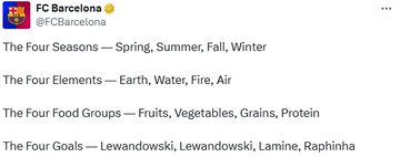 فيما سخر برشلونة من ريال مدريد بعد فوزه في الكلاسيكو 4-0، في المباراة التي جمعت الفريقين علي ملعب "سانتياجو برنابيو" بالجولة الحادية عشر من الليجا.