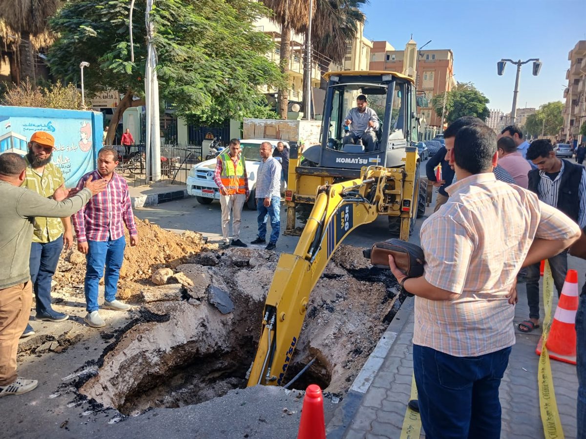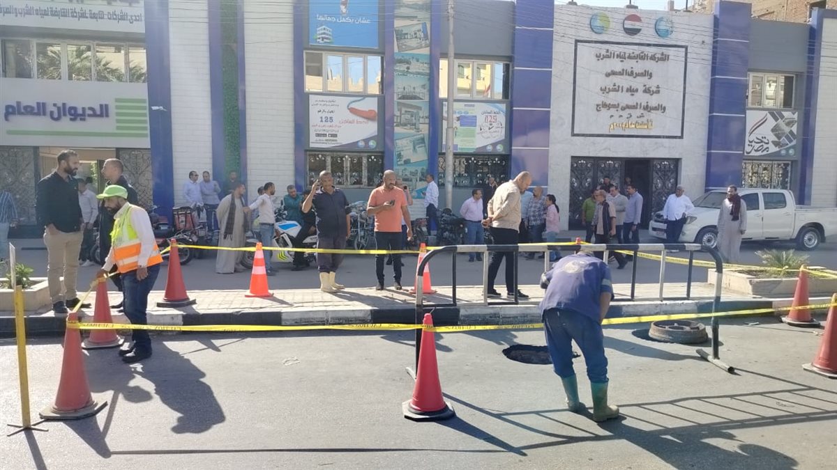 مياه سوهاج تعلن عدم تأثر خدمات مياه الشرب والصرف بالهبوط الأرضى بشارع التحرير
